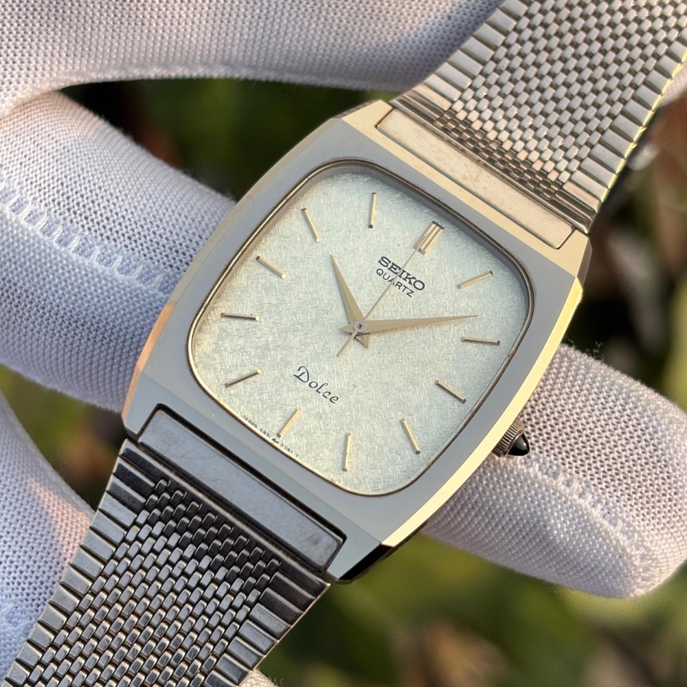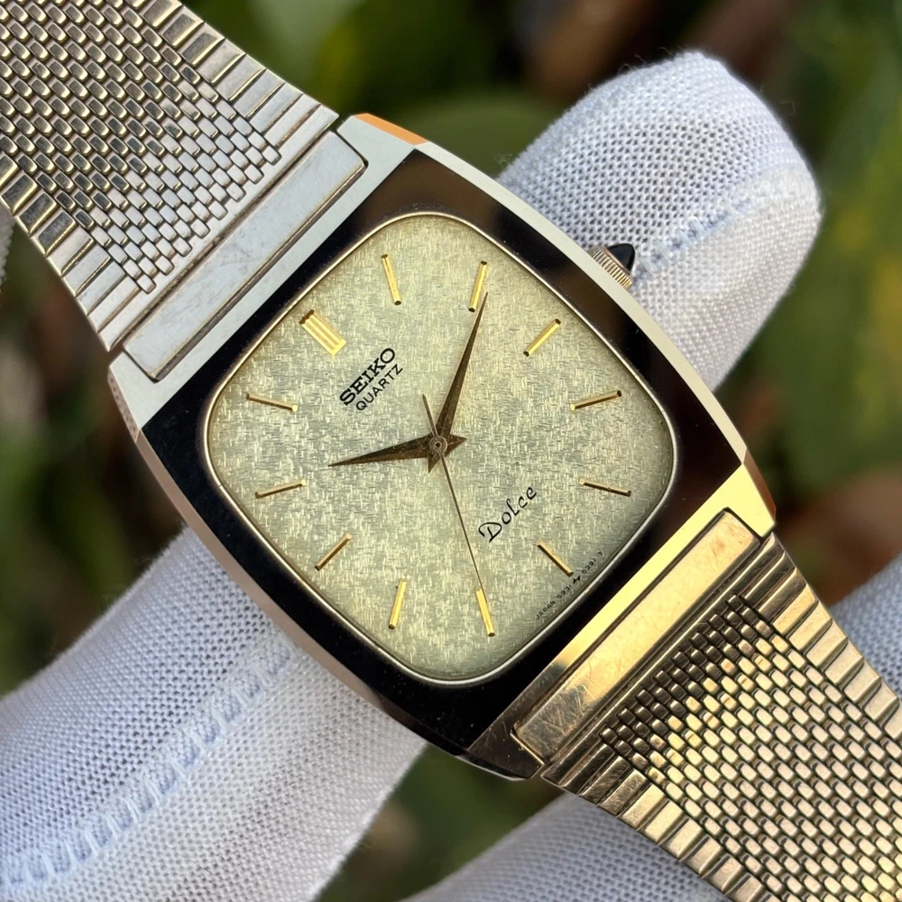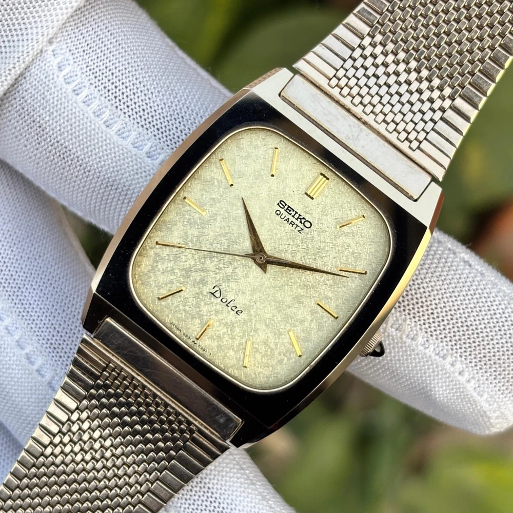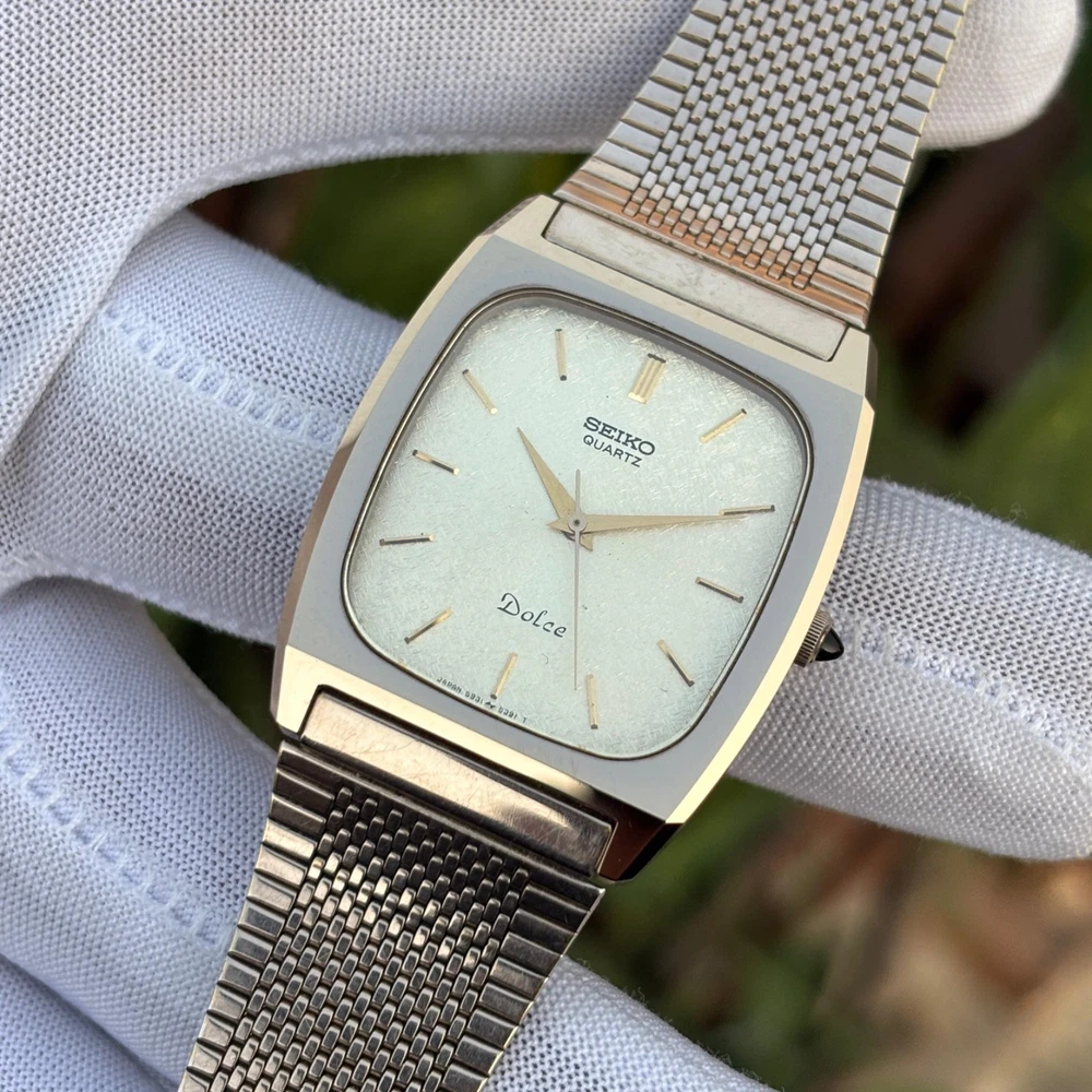 Vintage Seiko Dolce NSAG Snowflake Sapphire Crystal Japan Quartz Watch 5931-5340 Up for sale Seiko Dolce watch from my collection. The watch is working nicely and fully inspected before listing up for sale. It has some cosmetic signs of usage that can be seen in photos. Watch came with an original Seiko SGP stainless steel bracelet. Plz study photos for more details. Other Details: ๐ธ The Seiko Dolce range is renowned for its high-precision quartz movements and understated yet refined design. ๐ธ The Seiko Dolce 5931-5340 NSAG is a sophisticated men's watch, distinguished by its elegant design and durable stainless steel back. ๐ธ The Seiko Dolce captures the essence of a classic dress watch, with a design that radiates understated elegance. ๐ธ It features a captivating snowflake textured dial, exuding understated refinement. ๐ธ The watch boasts a sleek and elegant shaped case, offering a distinctive and rare design. ๐ธ The watch showcases an elegant golden dial with a snowflake textured, complemented by Dauphine-style golden hands and matching hour markers that enhance its visual appeal. ๐ธ The watch case is crafted from NSAG, an exceptionally durable alloy known for its high surface hardness and resistance to minor scratches. ๐ธ The NSAG material gives the case a sharp-edged appearance, and adds to its striking vintage dress watch aesthetic. ๐ธ The watch has a top-quality sapphire crystal, known for its scratch resistance and durability, making it a rare and excellent choice for luxury watches. ๐ธ The watch features a crown with an intact black onyx stone and is in excellent condition. Watch Measurements:- Case Size: 30 MM Case with crown: 32 MM Lug To Lug Size: 36 MM Bracelet Wrist Size: Adjustable Bracelet End link Width: 19 MM Thanks! Please visit my eBay account and follow me, I am selling Classic and rare vintage gem watches at reasonable prices. We don't test watches for waterproofing. Postage Details: I offer worldwide shipment, watches will be delivered through UPS/FedEx Which may take 10 to 18 Days. Please be informed that any import duties will be paid by the buyer. SKU: BK-โ176-ND