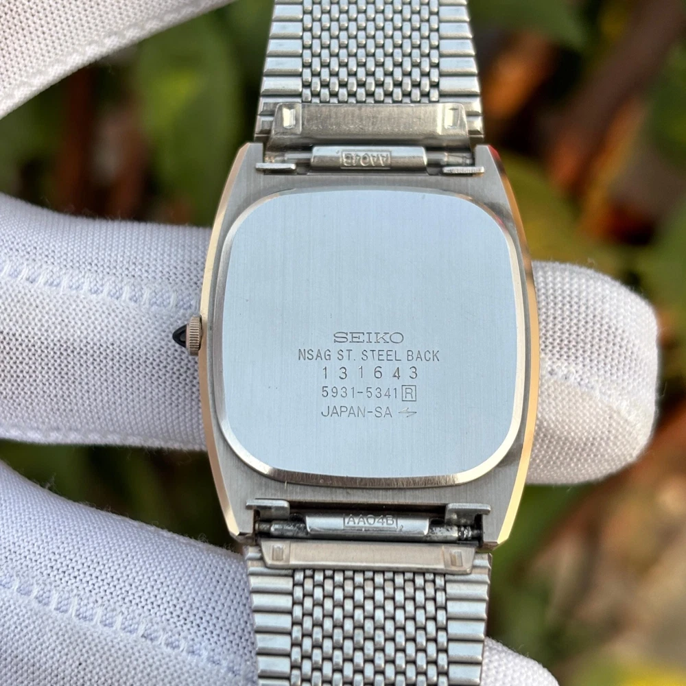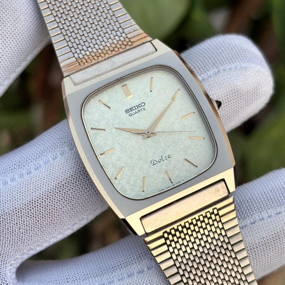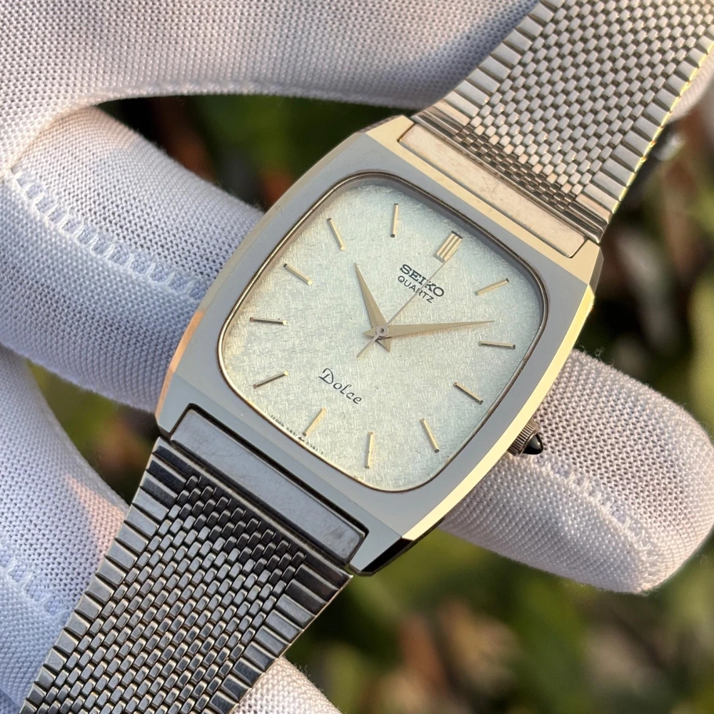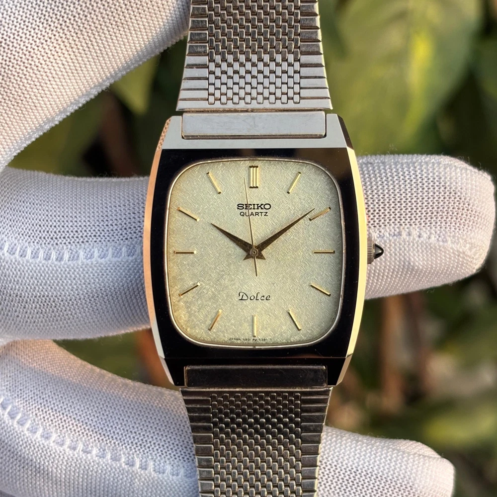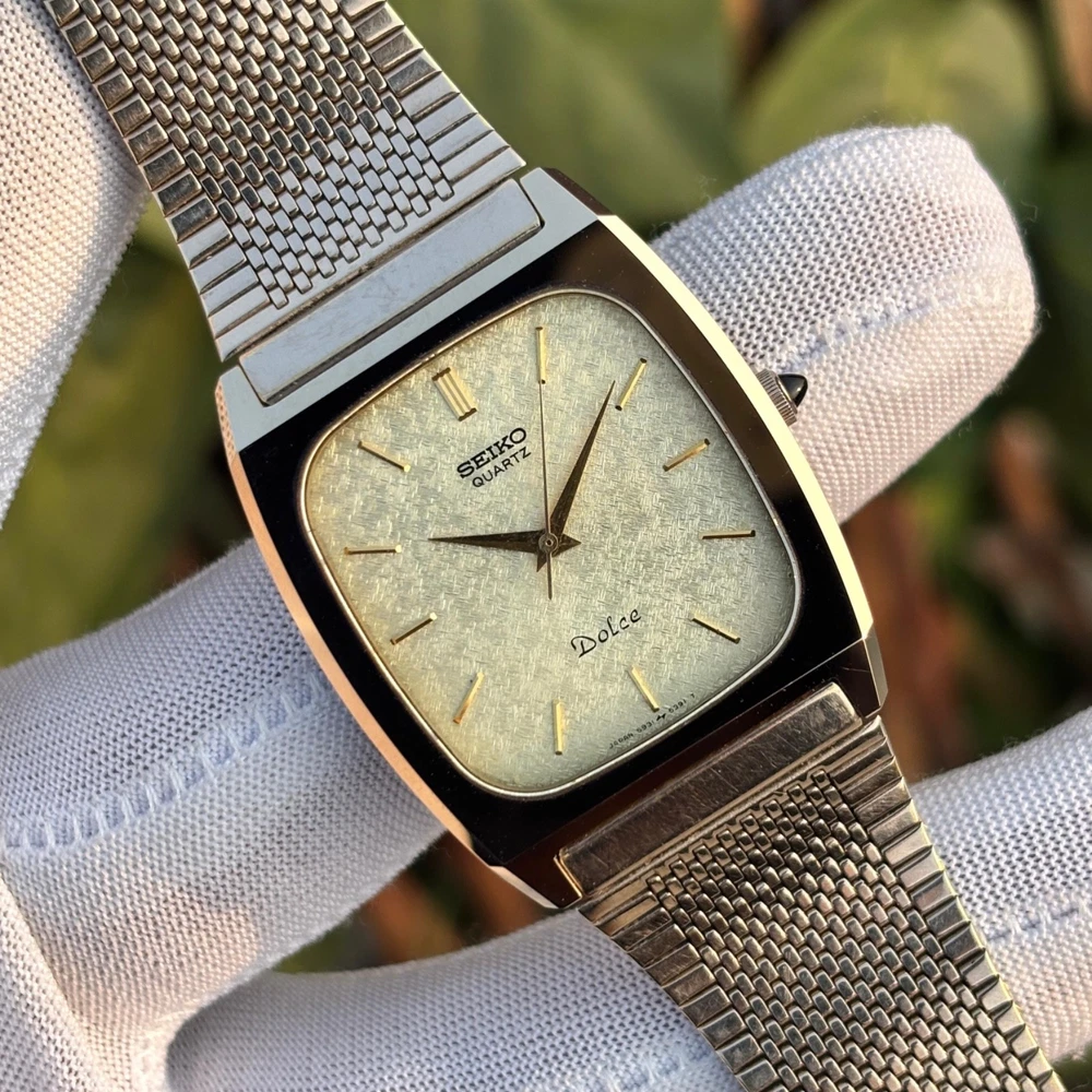 Vintage Seiko Dolce NSAG Snowflake Sapphire Crystal Japan Quartz Watch 5931-5340 Up for sale Seiko Dolce watch from my collection. The watch is working nicely and fully inspected before listing up for sale. It has some cosmetic signs of usage that can be seen in photos. Watch came with an original Seiko SGP stainless steel bracelet. Plz study photos for more details. Other Details: ๐ธ The Seiko Dolce range is renowned for its high-precision quartz movements and understated yet refined design. ๐ธ The Seiko Dolce 5931-5340 NSAG is a sophisticated men's watch, distinguished by its elegant design and durable stainless steel back. ๐ธ The Seiko Dolce captures the essence of a classic dress watch, with a design that radiates understated elegance. ๐ธ It features a captivating snowflake textured dial, exuding understated refinement. ๐ธ The watch boasts a sleek and elegant shaped case, offering a distinctive and rare design. ๐ธ The watch showcases an elegant golden dial with a snowflake textured, complemented by Dauphine-style golden hands and matching hour markers that enhance its visual appeal. ๐ธ The watch case is crafted from NSAG, an exceptionally durable alloy known for its high surface hardness and resistance to minor scratches. ๐ธ The NSAG material gives the case a sharp-edged appearance, and adds to its striking vintage dress watch aesthetic. ๐ธ The watch has a top-quality sapphire crystal, known for its scratch resistance and durability, making it a rare and excellent choice for luxury watches. ๐ธ The watch features a crown with an intact black onyx stone and is in excellent condition. Watch Measurements:- Case Size: 30 MM Case with crown: 32 MM Lug To Lug Size: 36 MM Bracelet Wrist Size: Adjustable Bracelet End link Width: 19 MM Thanks! Please visit my eBay account and follow me, I am selling Classic and rare vintage gem watches at reasonable prices. We don't test watches for waterproofing. Postage Details: I offer worldwide shipment, watches will be delivered through UPS/FedEx Which may take 10 to 18 Days. Please be informed that any import duties will be paid by the buyer. SKU: BK-โ176-ND