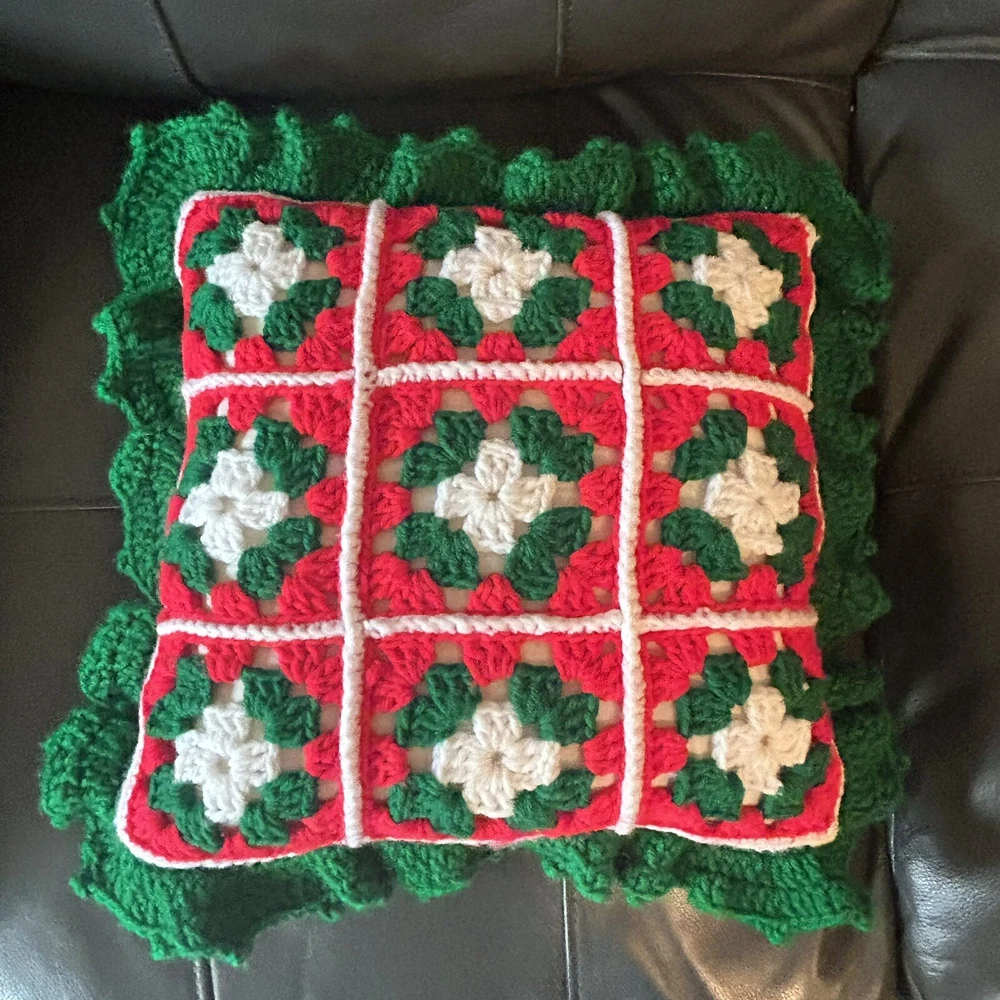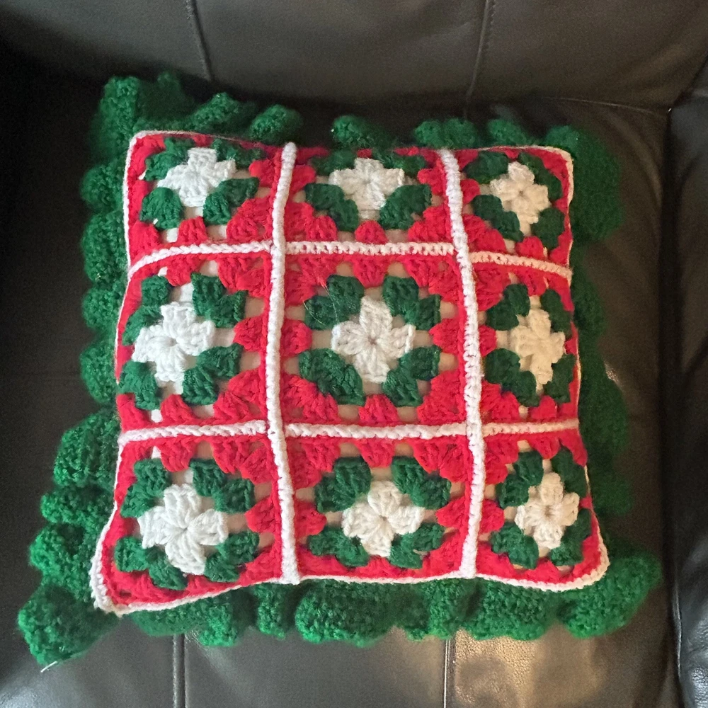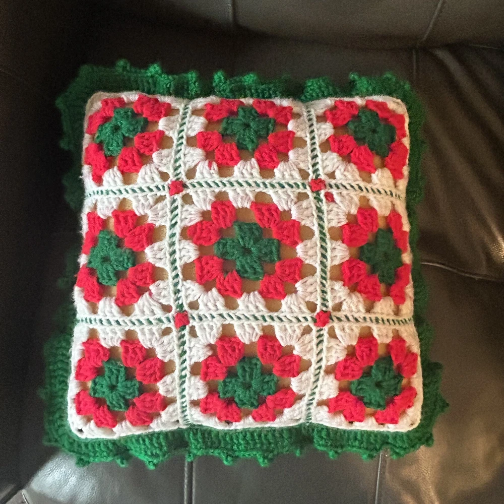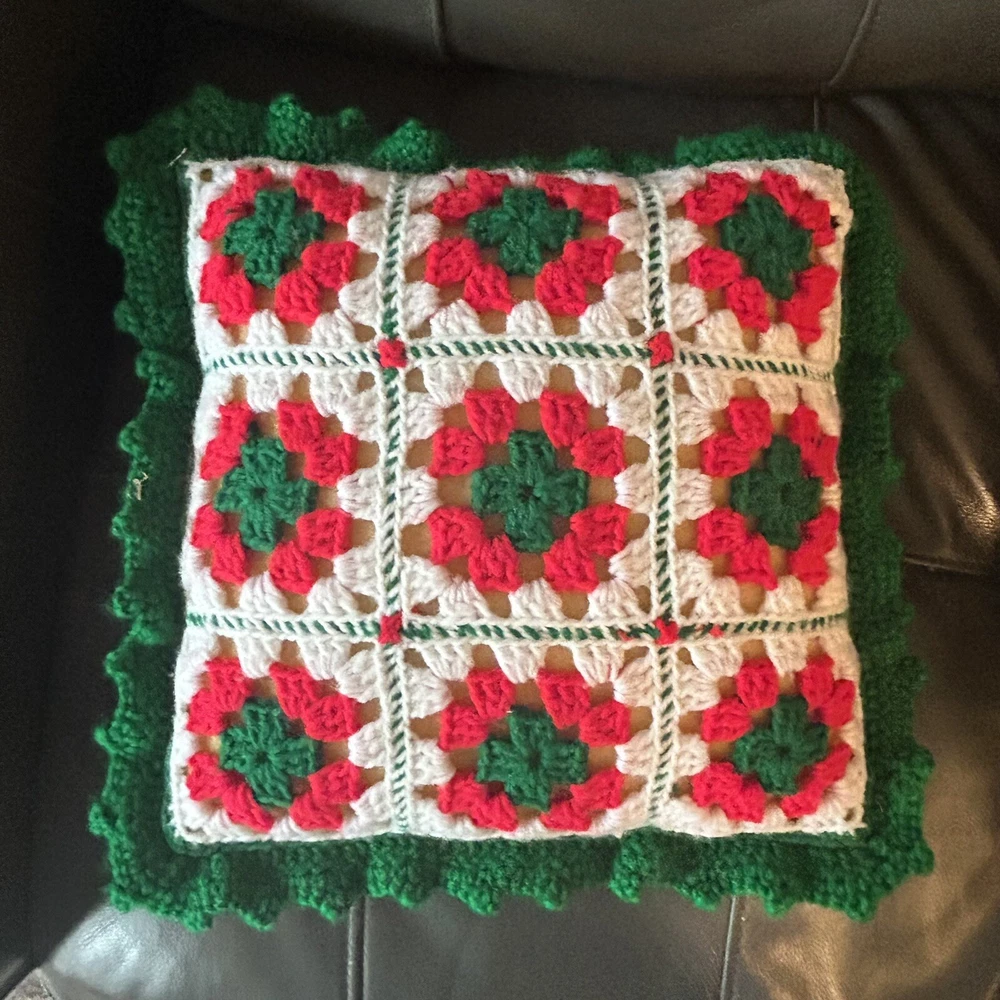 Theme: Christmas, Holiday Style: Vintage/Retro Shape: Square Pattern: Granny Square Brand: Handmade Type: Throw Pillow Color: Multicolor