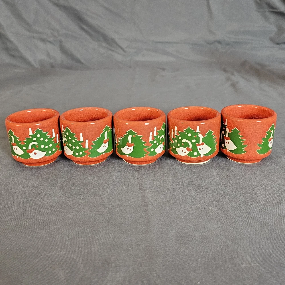 Vintage Set Of 5 Waechtersbach CHRISTMAS TREE & GEESE 2" Candle Holders Ceramic. Ships Out Free Within One Business Day