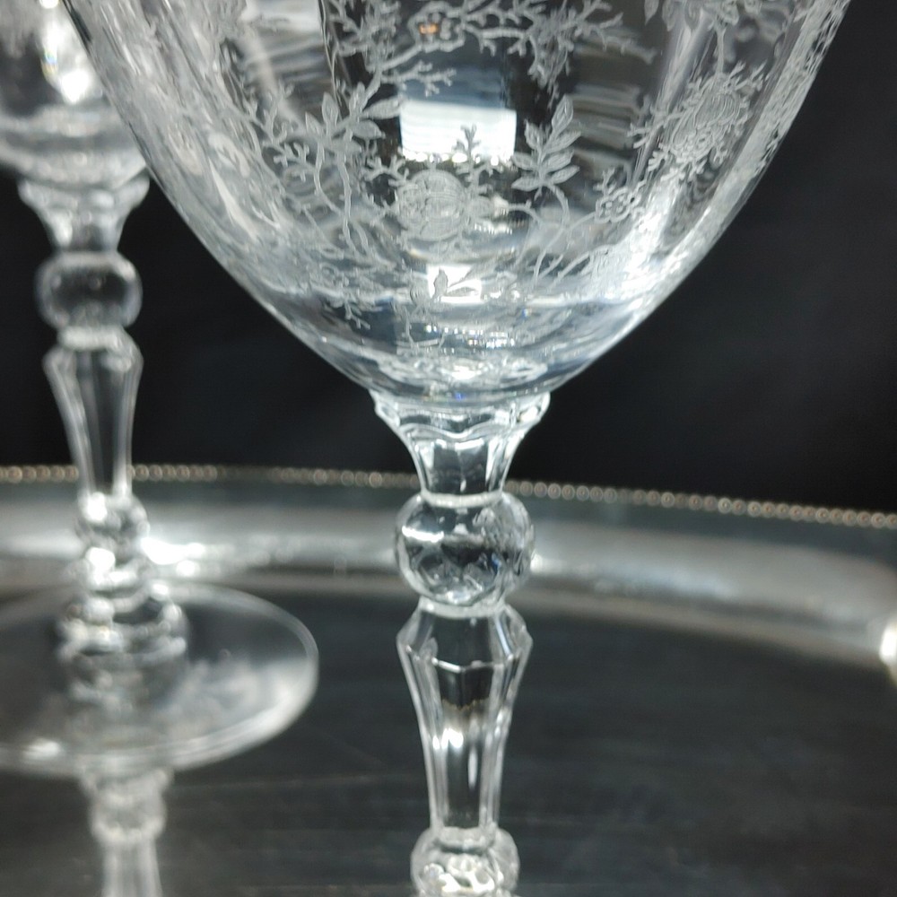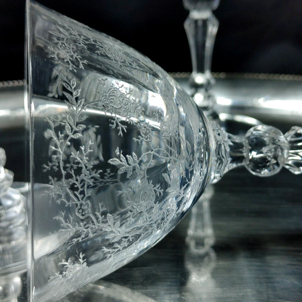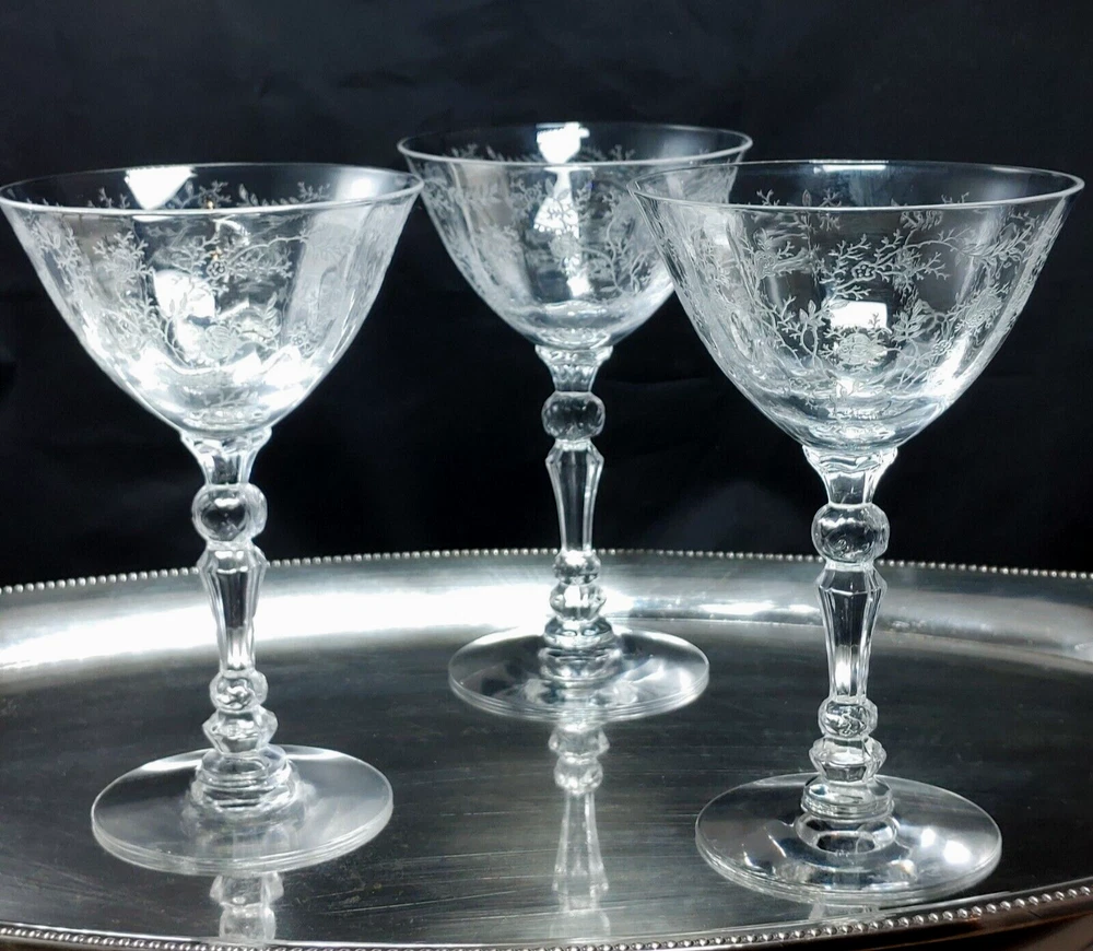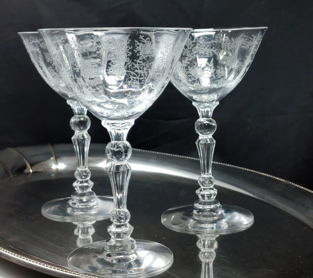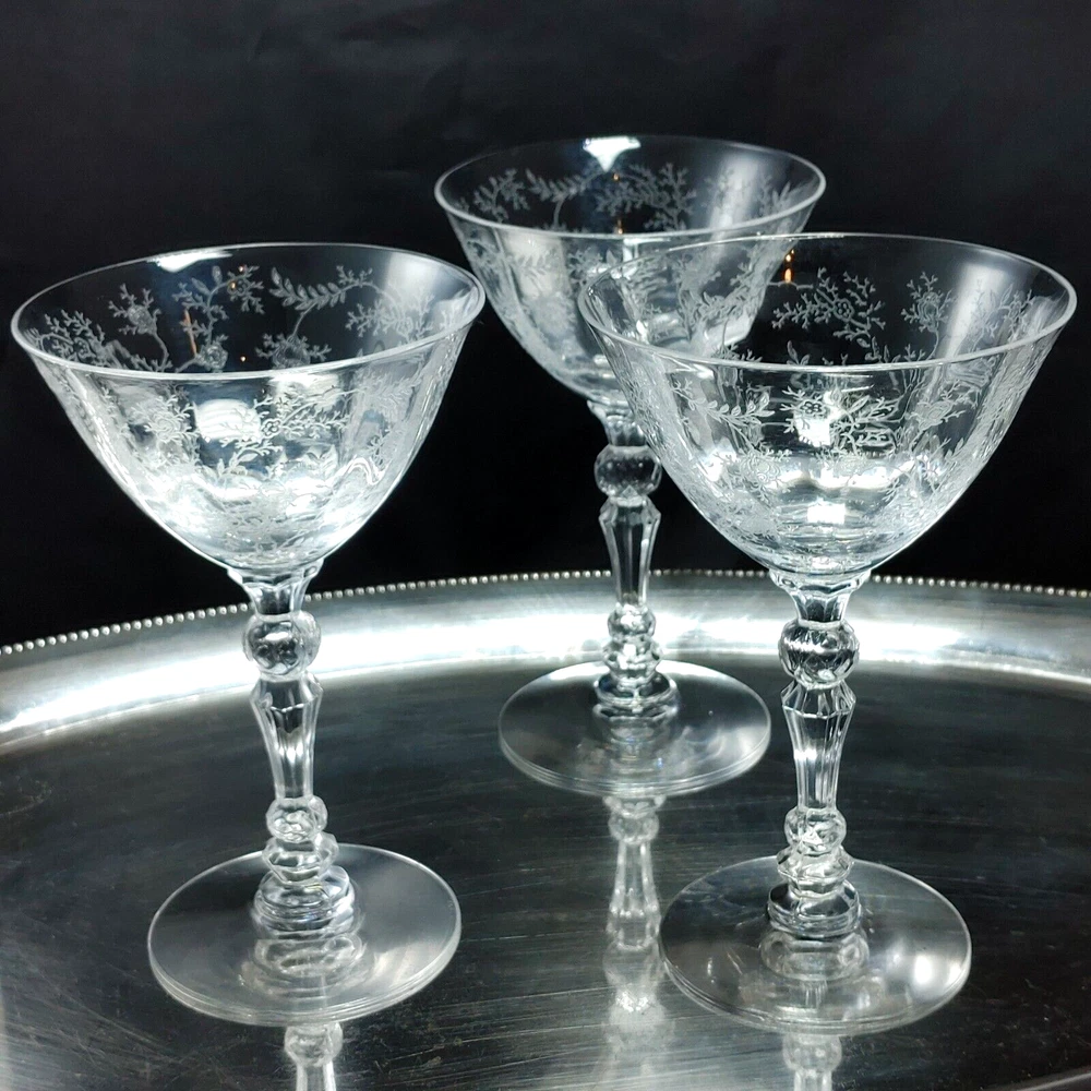 Vintage Set of 3 Fostoria Chintz Etched Crystal Champagne Sherbet Glasses