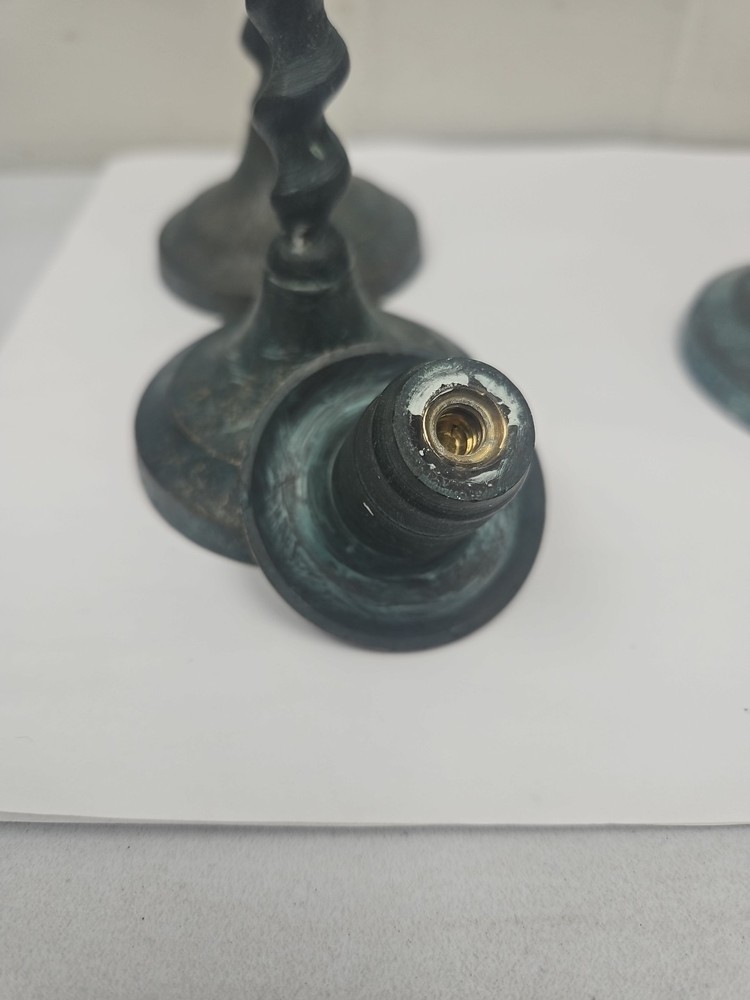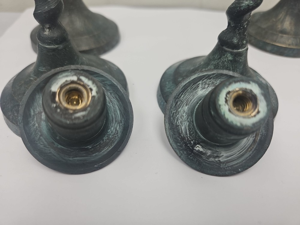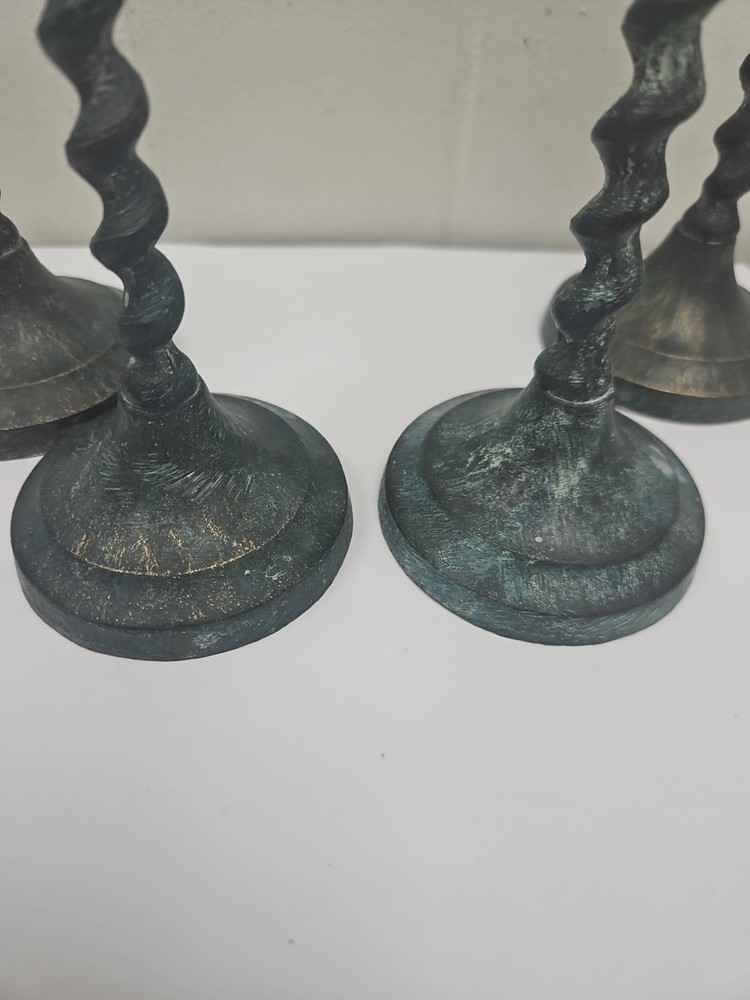 Handmade: No Item Width: na Style: English Era: unknown Original/Reproduction: Original Time Period Manufactured: unknown Color: Tarnished Number in Pack: 4 Customized: No Item Weight: 1.56 lbs total weight Brand: Unbranded Shape: Barley Twist Material: Brass Care Instructions: Clean with Damp Cloth Pattern: Barley Twist Item Height: 2, 9 inch & 2, 12 inch Antique: Yes Suitable For: All decor Country of Origin: Unknown Occasion: All Occasions Type: Candle Holder Room: Any Room Item Length: 10.25 in