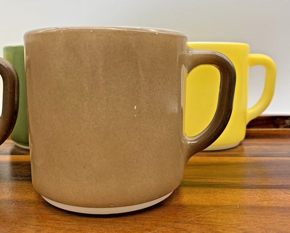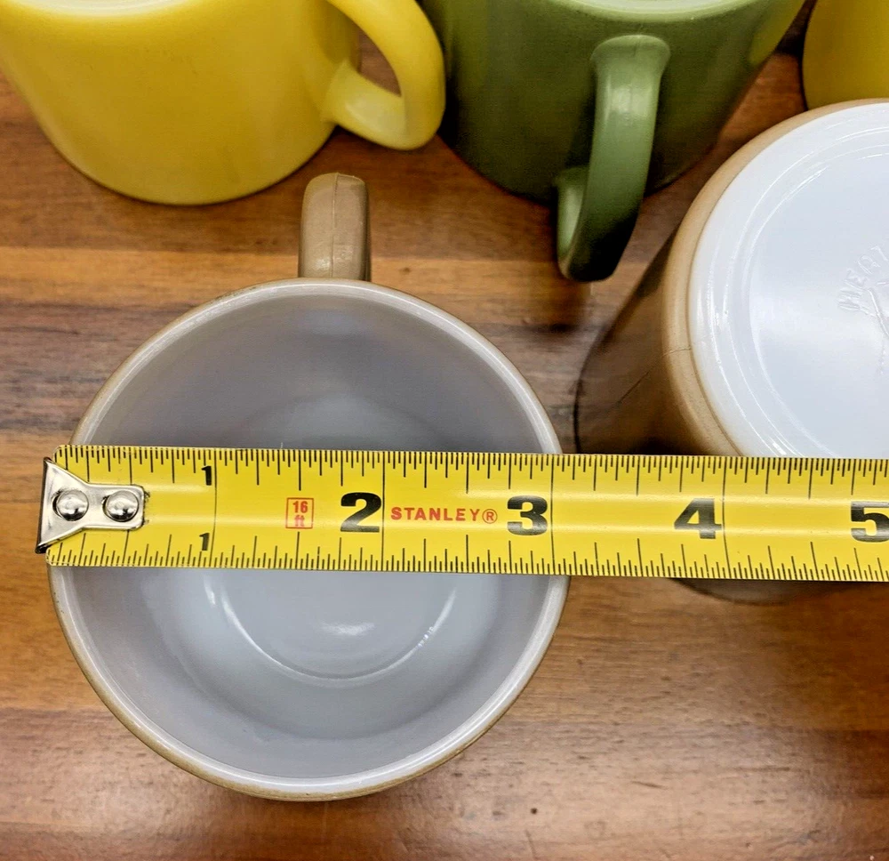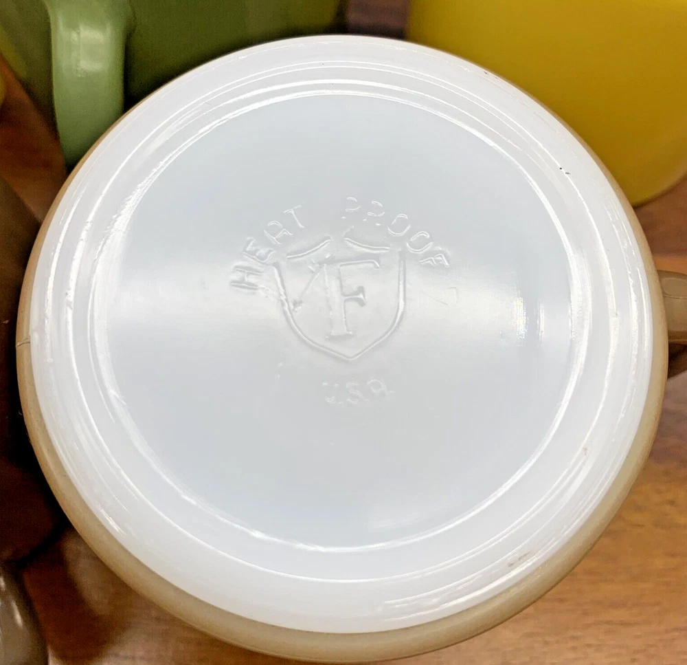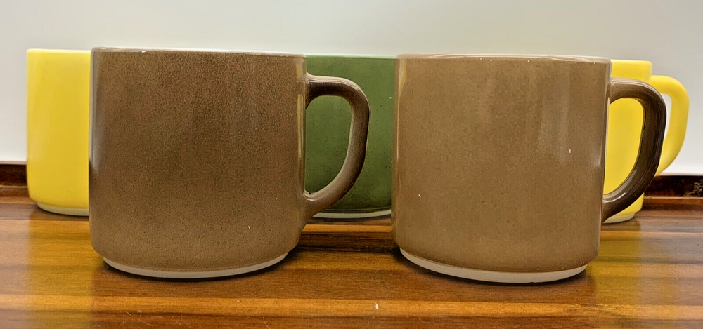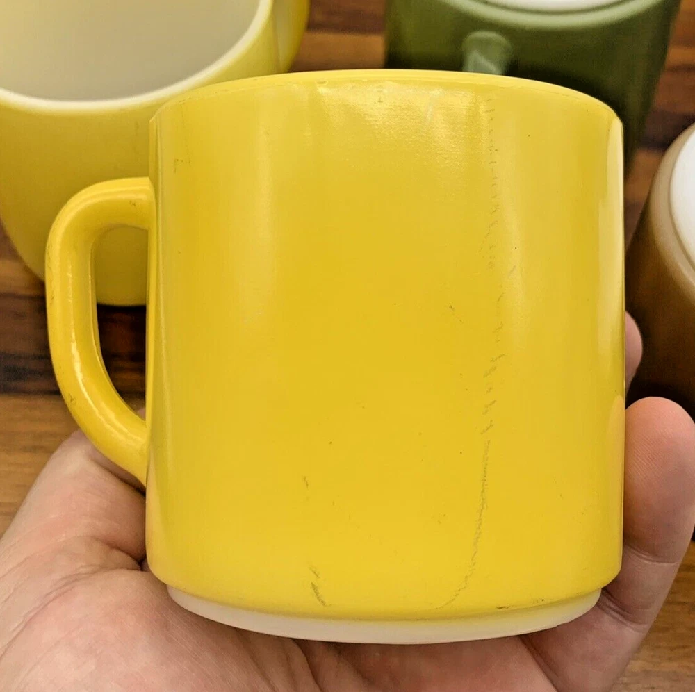 Vintage Set of 5 Federal Glass Multicolor MCM Coffee Cup Mug D Handles Yellow Brown Green In great vintage pre-owned condition, especially considering the age and use! No chips or cracks that I could find! They may show some minor marks from being used. The two yellow mugs look to have the most use to them (pictures attached). The two brown and one green are excellent! Yellow - 2 Brown - 2 Green - 1 Please zoom in on photos for a better view of the item's condition. We do our absolute best to research all items we sell. If you ever have questions, please reach out to me! We will always package items securely and with care. Thank you for viewing and please visit our store for more awesome vintage goodies!