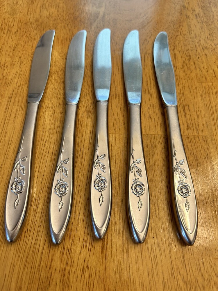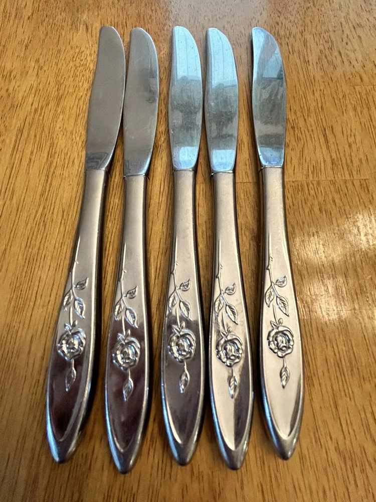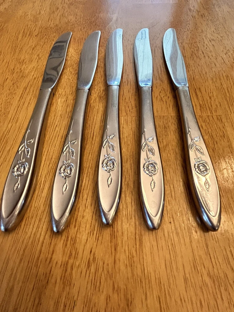 Vintage Set of 5 Oneida MY ROSE Community Flatware Butter Knives