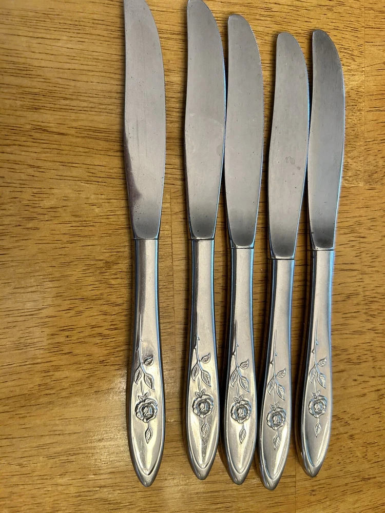Color: Silver Department: Adult Handle Pattern: Floral Type: Dinner Knife Handle Material: Stainless Steel Brand: ONEIDA Set Includes: Knife Pattern: My Rose Material: Stainless Steel