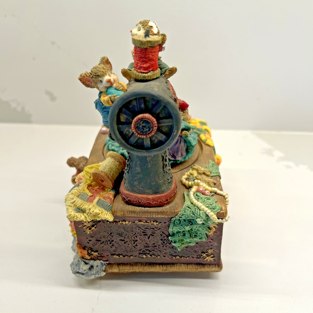 Vintage Sewing Machine with Mice Music Box “My Favorite Things” Resin – Working Category: Vintage Figurines • Music Boxes • Collectibles Era: Late 20th Century Material: Resin with painted details Dimensions: Approximately inches Condition: Used. Working. No box or packaging. Please carefully review pictures. MOUSE EAR IS MISSING. Item Description This charming resin music box features an old‑fashioned sewing machine brought to life by a pair of whimsical mice, creating a cozy scene full of personality and nostalgia. When wound, it plays “My Favorite Things,” adding a warm, familiar melody that enhances its storybook feel. The piece is fully functional and displays beautifully, making it a lovely addition to a sewing room, craft space, or vintage‑themed collection. Its hand‑painted details and playful composition give it a timeless, heartwarming presence. This piece has been gently enjoyed and carefully preserved. It may show light signs of age consistent with vintage items, adding to its character and authenticity. Condition Notes All items are sold as-is in their current condition. Please review all photos carefully , as they are considered part of the description. Any notable wear, patina, or imperfections will be photographed and described. Shipping Ships within 3 business days of payment. Tracking provided through eBay once shipped. Packed with care to ensure safe arrival. If you need your item by a specific date, please message before purchase. Returns No returns unless the item is significantly not as described . Items must be returned in the same condition received. Please contact me promptly if you believe an item was misrepresented. Carrier Issues & Insurance If your package is delayed or missing, please contact the carrier first using the tracking number provided: USUS: 1‑800‑ASK‑USPS FedEx: 1‑800‑463‑3339 All items include additional insurance beyond standard carrier coverage. If the carrier cannot resolve the issue, I will file a claim to recover the item’s value. Thank you for your purchase. Your support means so much, and I hope this vintage piece brings warmth and character to your home. Curated Vintage Home Goods & Collectibles Thoughtfully Selected • Carefully Packed • Shipped with Care