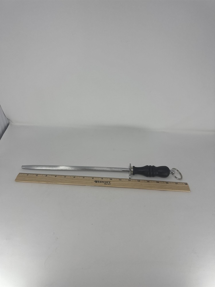 Vintage Sharpening Steel Honing Rod 12" Blade 18" Total Scalloped Guard Ring Item is in vintage pre-owned condition and may show some signs of use and wear/tear. Please check out the pictures and let me know if you have any questions. Thank you for checking out my shop! :)