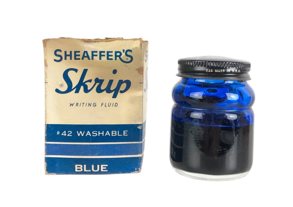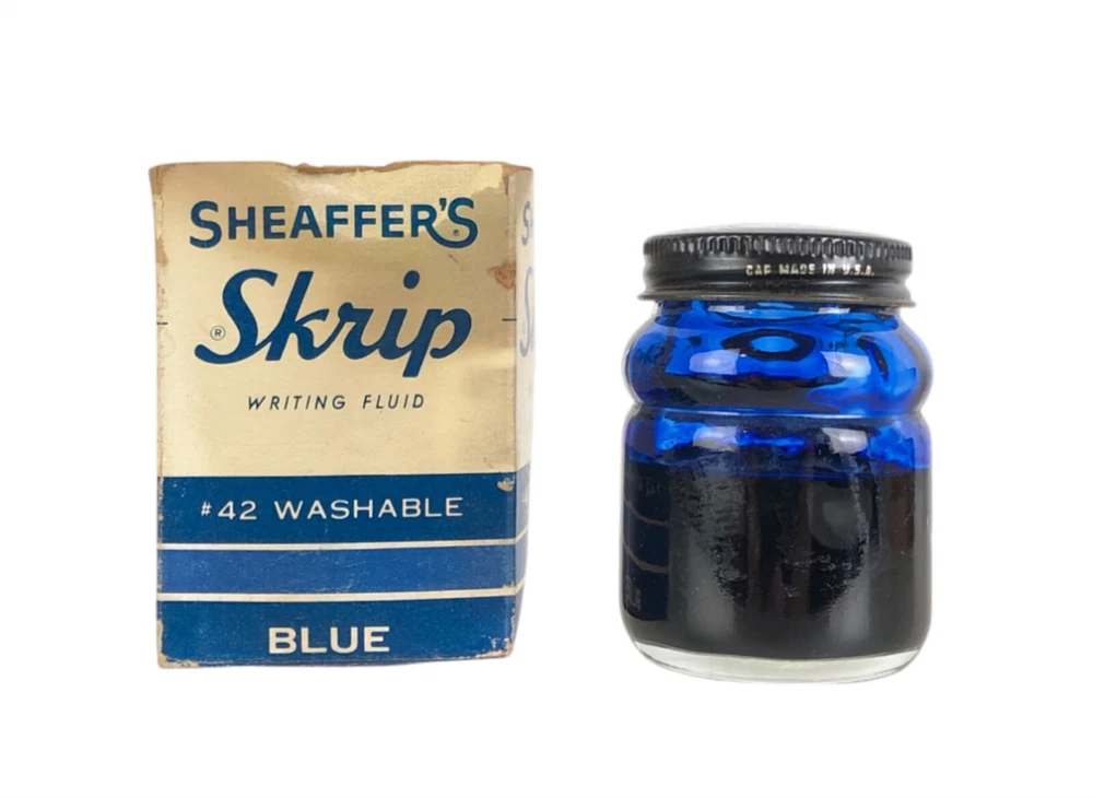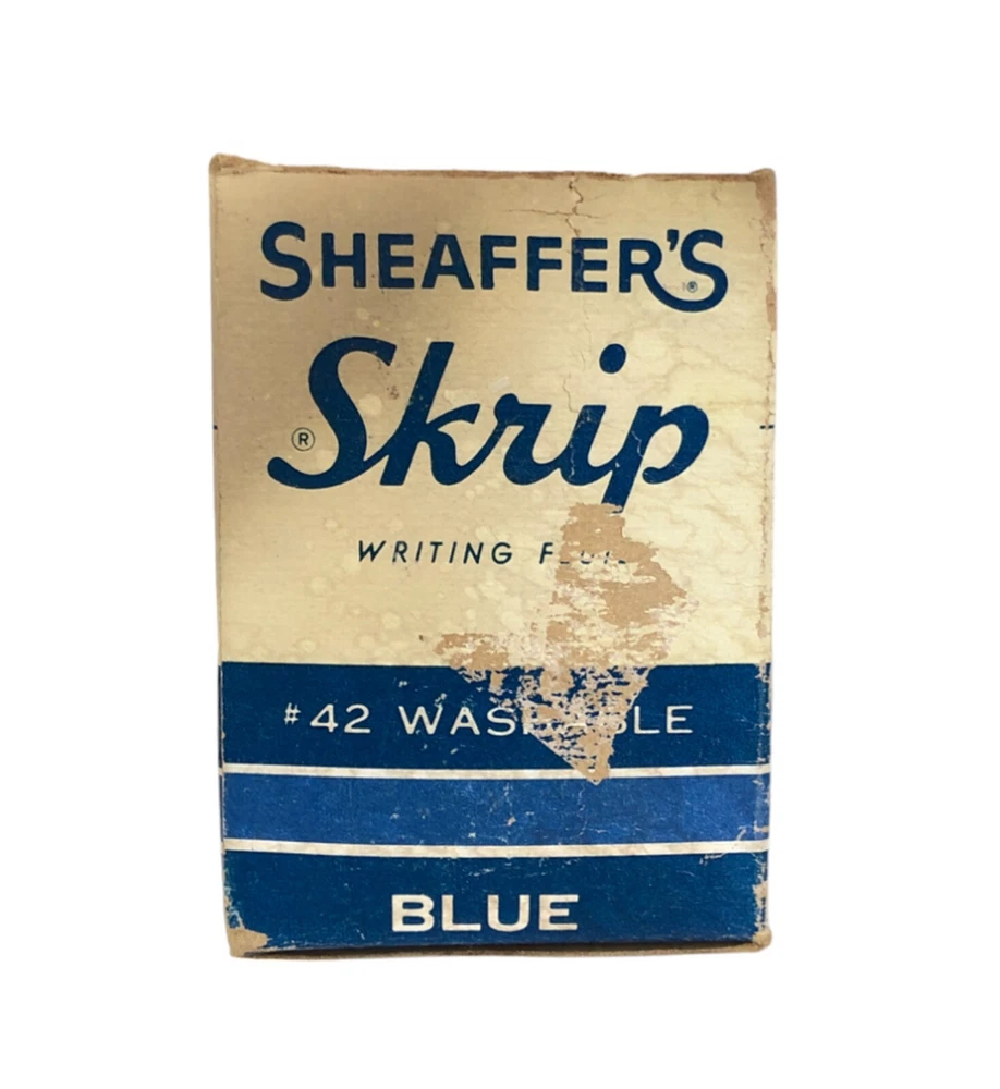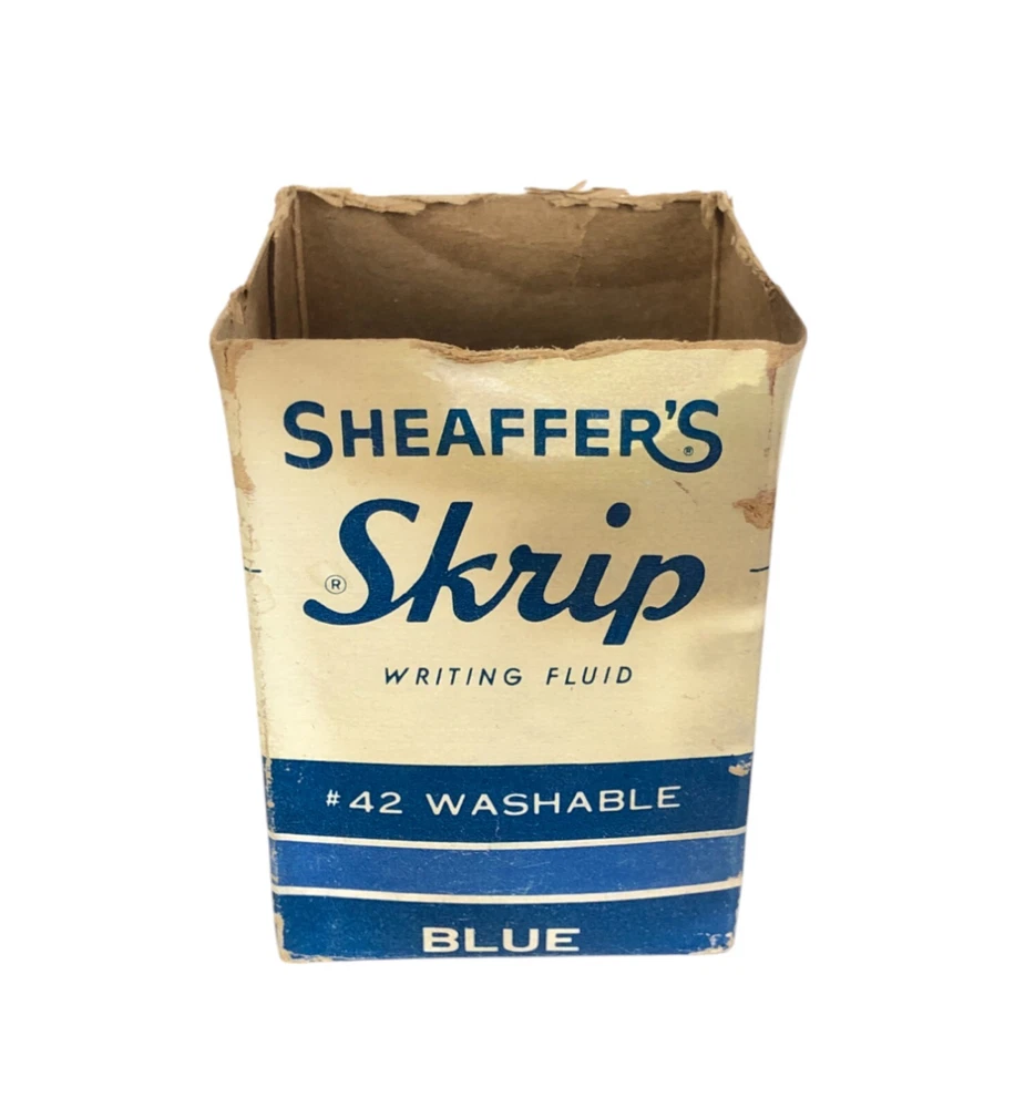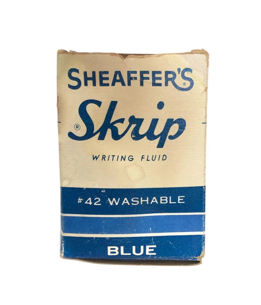 Vintage Sheaffer Skrip Blue Writing Fluid Glass Bottle with Original Box