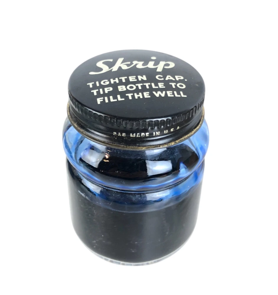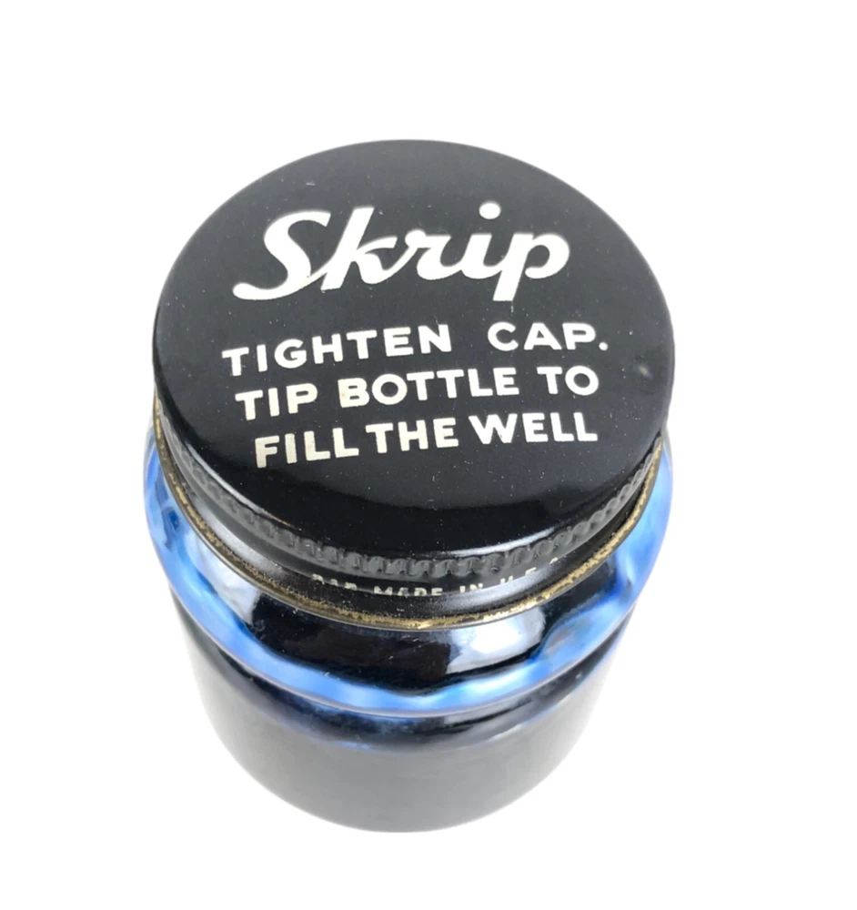 Vintage Sheaffer Glass Skrip Ink Bottle with Lid PAT 1759866 Empty Side Well
