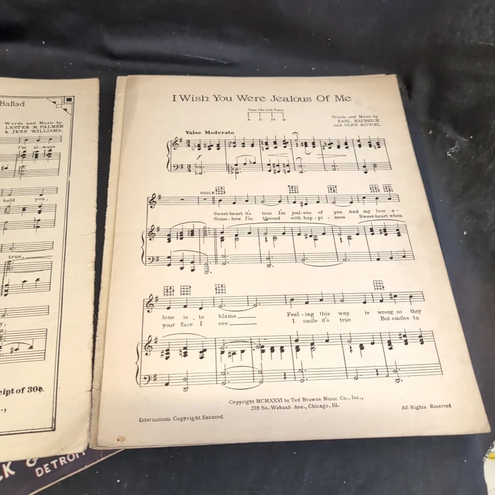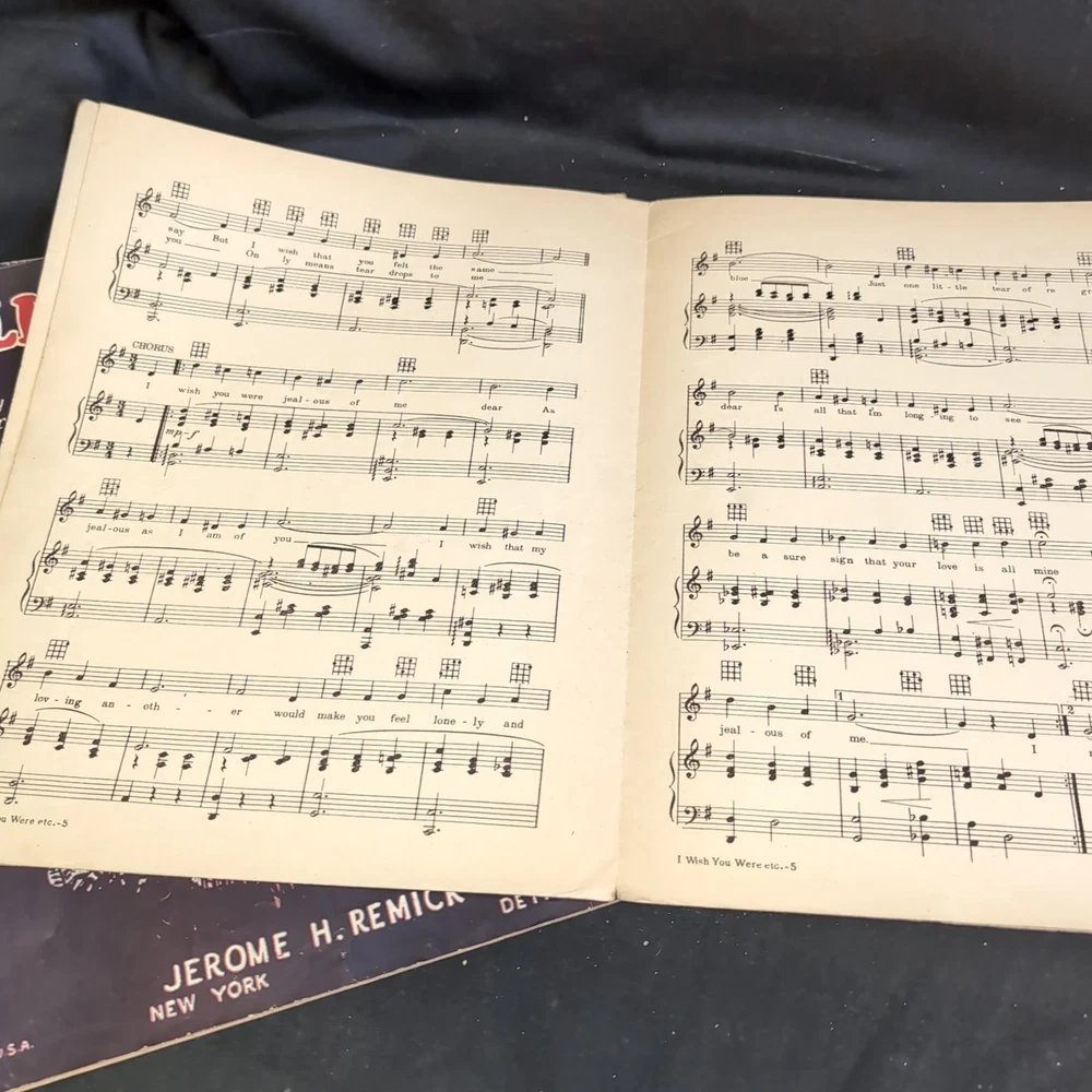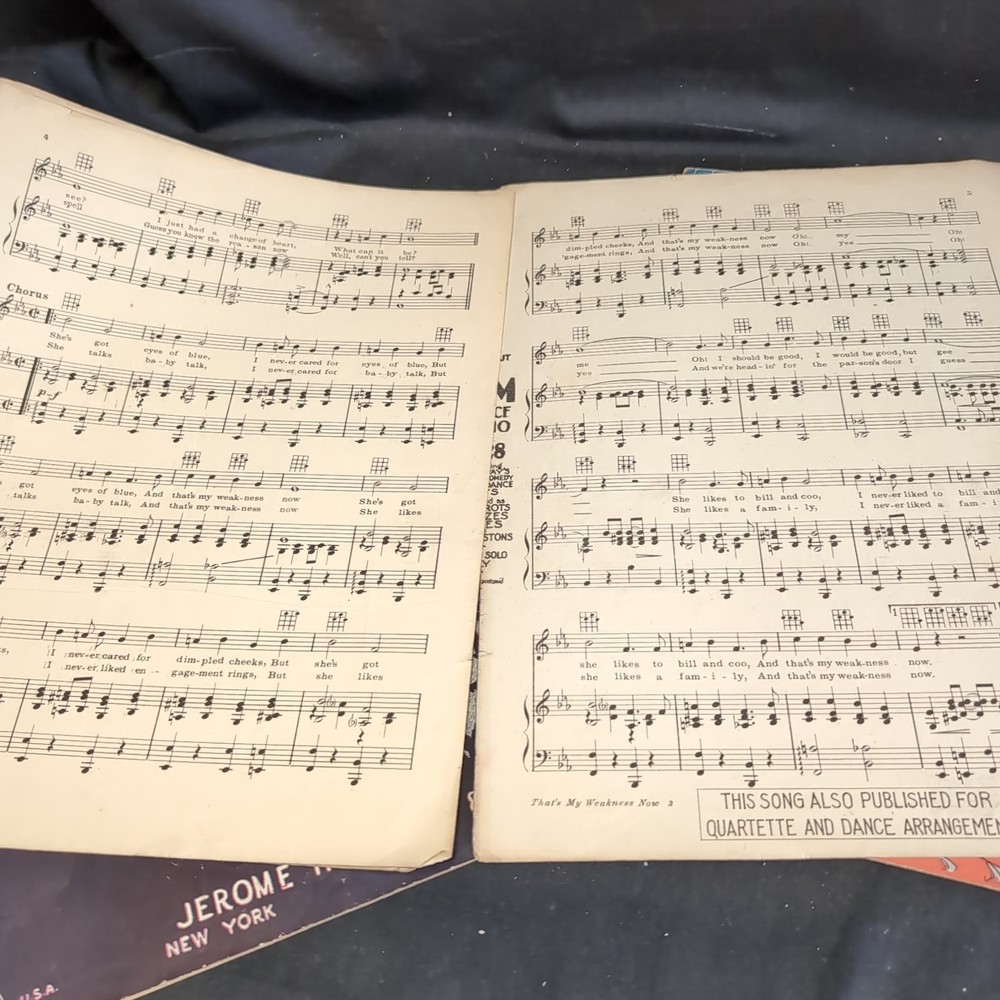 Please look at all the photos.Delve into the charm of the 1920s with this authentic Vintage Sheet Music piece, "That's My Weakness Now," accompanied by "Wish You Were Jealous of Me." A timeless treasure for musical enthusiasts and collectors, this sheet music format offers a glimpse into the era's musical theater and classic tunes. Perfect for those who appreciate the nostalgia and craftsmanship of bygone days, this item finds its place in a collection ofMusicals genre. Whether for performance, study, or display, it serves as a rich cultural artifact that captures the essence of historical music expression.