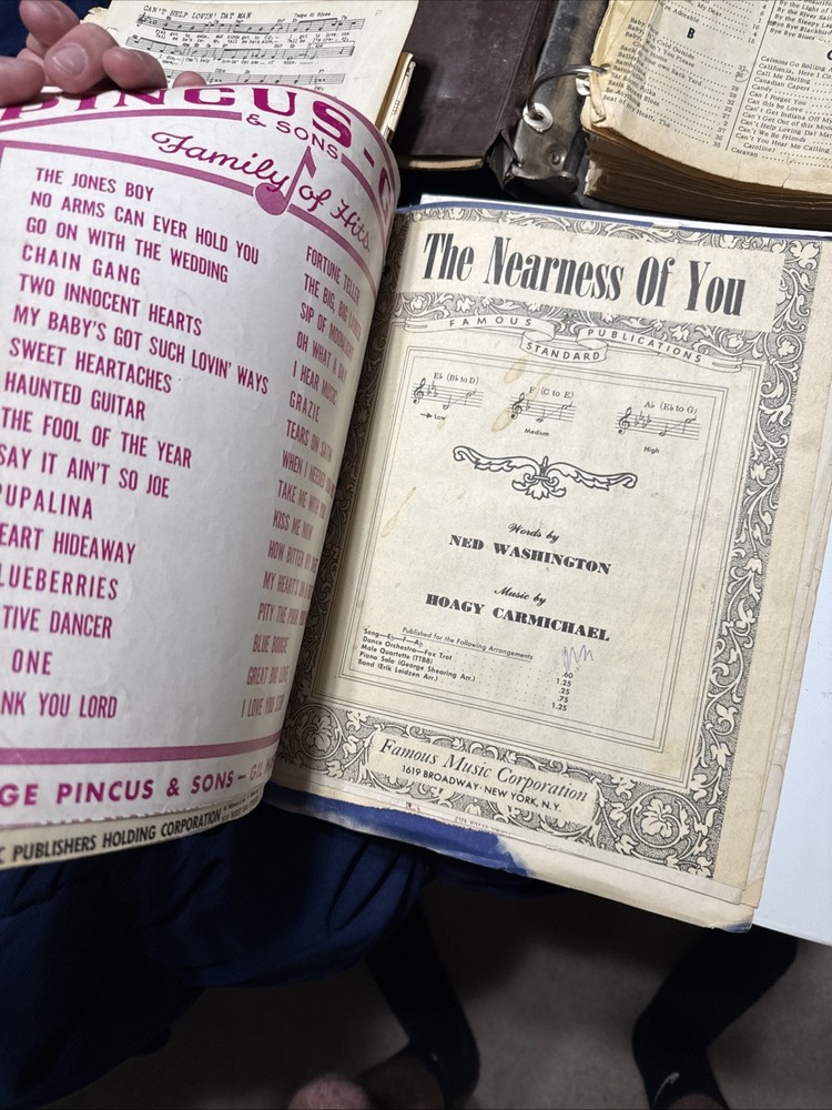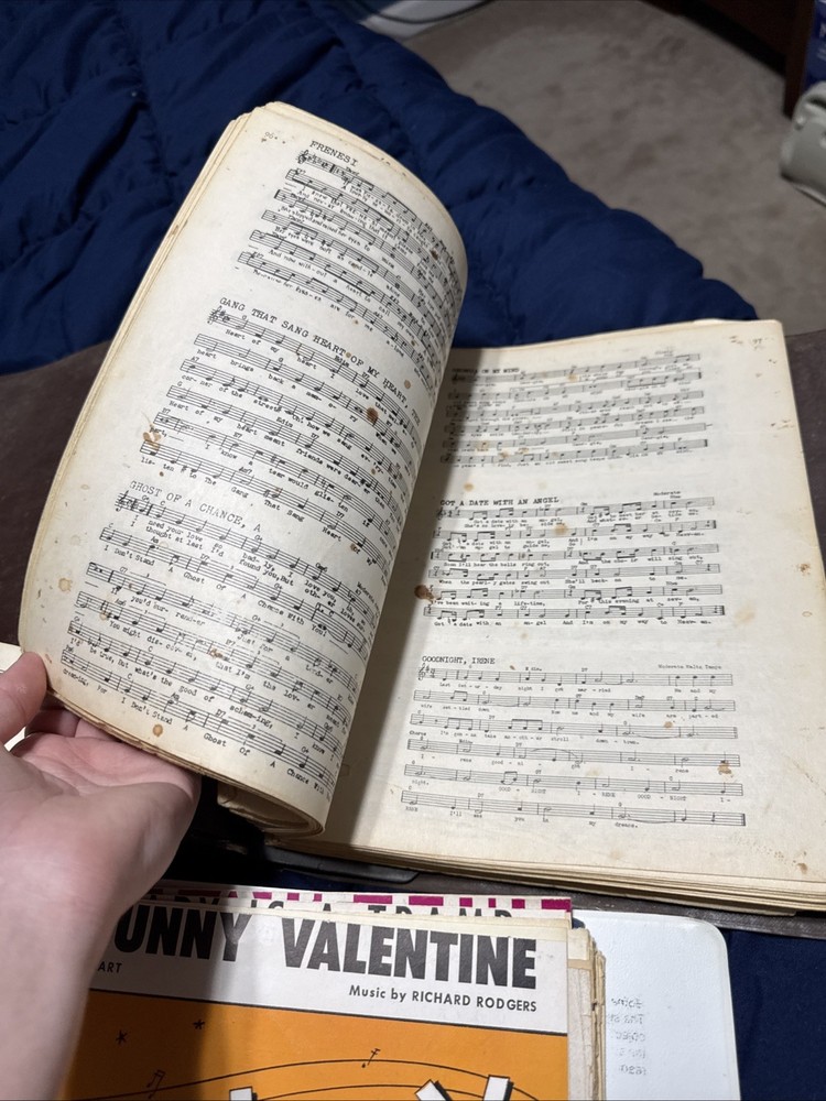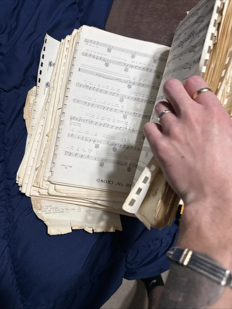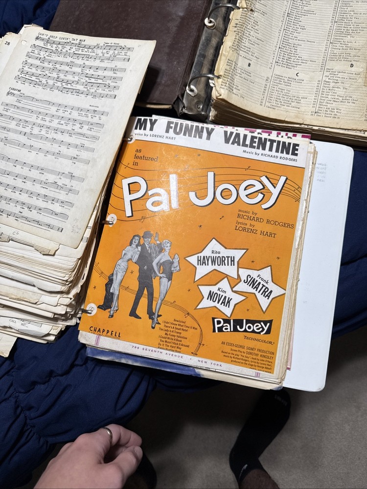 Massive vintage sheet music collection spanning early 1900s through the 1950s/60s. This is a large, well-preserved lot featuring approximately 1,100–1,500+ pages of original sheet music. Includes: * Jazz standards, Broadway, and classic American songbook pieces * Notable titles/artists (including Pal Joey and Sinatra-era material) * Organized in binders plus additional loose stacks * Original vintage prints — not reproductions Condition: * Overall good vintage condition * Some wear, edge damage, and aging consistent with age * Binders show use but hold pages well This is an excellent lot for: * Collectors * Musicians / pianists * Resellers (strong individual resale potential) Selling as one complete lot. Tons of history here.