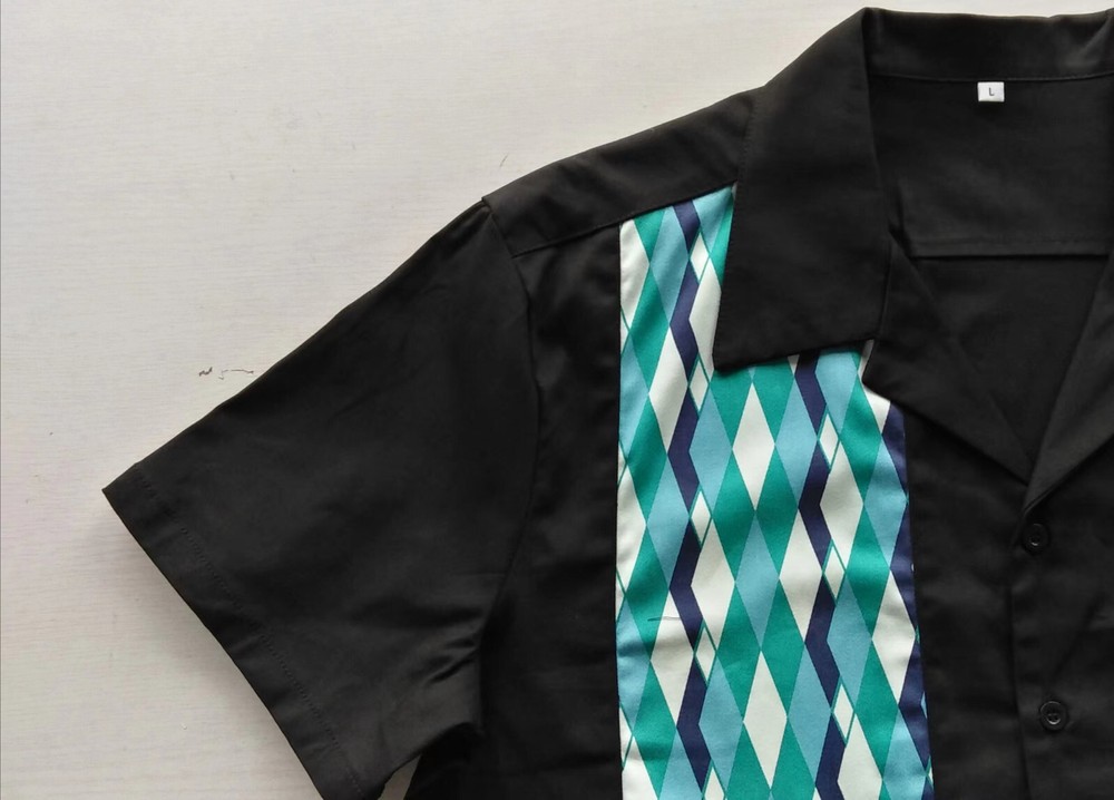 Features: Pockets contrast panel: pattern ptint Size: L Material: Cotton, Spandex Occasion: Casual Collar Style: Button-Down novelty shirts: holiday shirts Vintage: No Department: Men Closure: Button Color: Black Pattern: Geometric Neckline: Collared Fabric Type: Woven Size Type: Regular Handmade: No Theme: 50s, 60s, Beach, Cowboy, Hawaiian, Hip Hop, Holiday, Outdoor plus size: casual shirt Brand: Unbranded Fit: Relaxed Type: Button-Up oversized shirt: hawaiian shirt Sleeve Length: Short Sleeve Season: Fall, Spring, Summer bowling shirt: panel shirt Country/Region of Manufacture: China