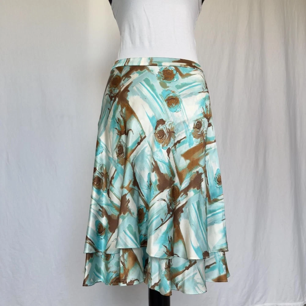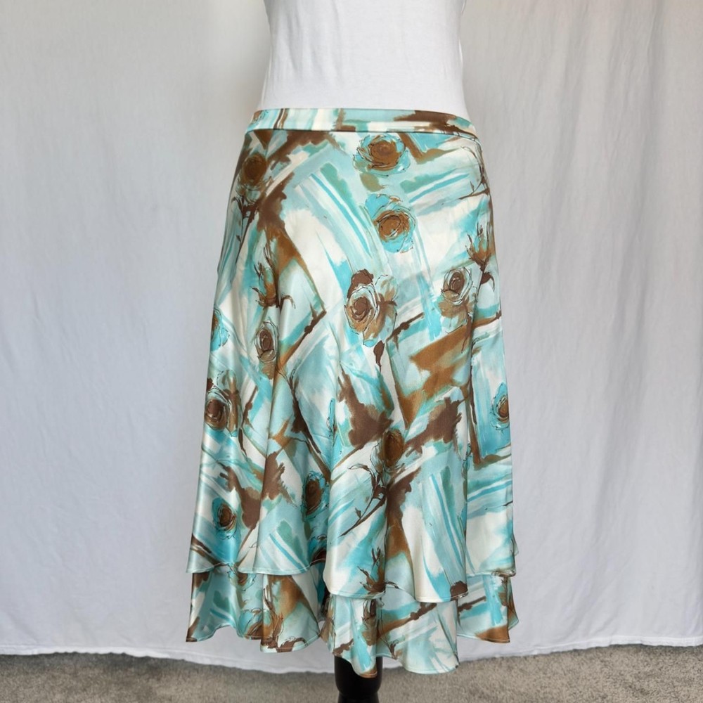 Vintage Silk Midi Skirt \ Y2K 2000s Silk Aquamarine Patterned Skirt π Size: 4 or SM [Mannequin wears a size SM] π Brand: St. John Collection by Marie Gray - 90's skirt π Condition: In perfect condition! No known flaws. #midiskirt #y2k #vintage #silkskirt #90sskirt