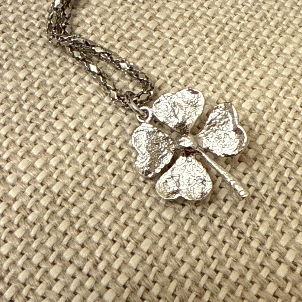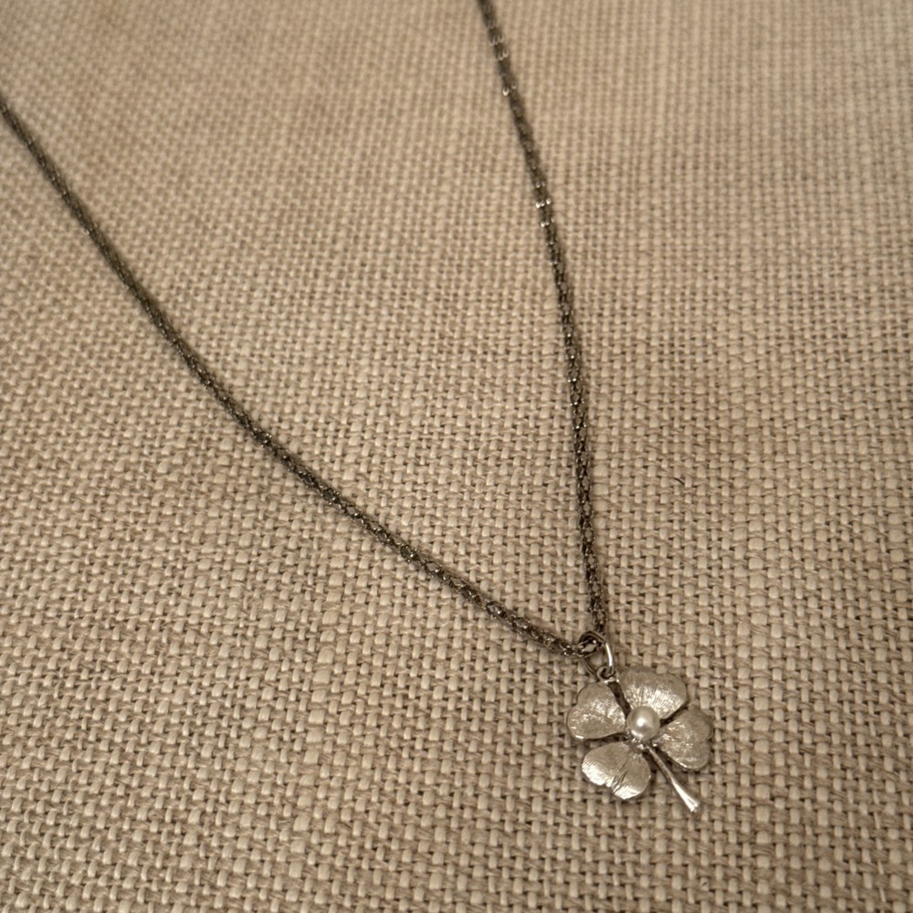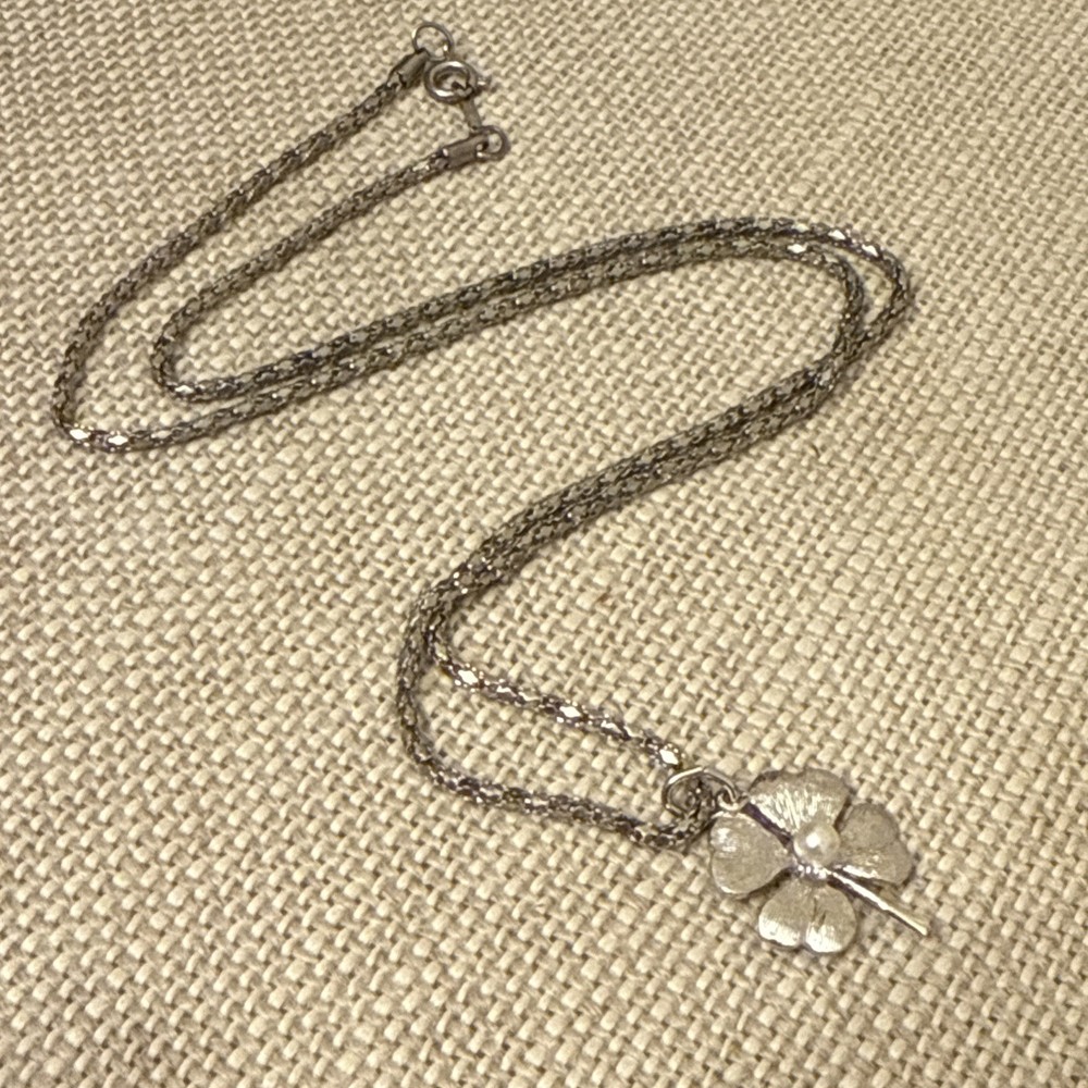 Vintage Silver Four Leaf Clover Textured Faux Pearl Chain Necklace. Condition is Pre-owned. Shipped with USPS Ground Advantage.