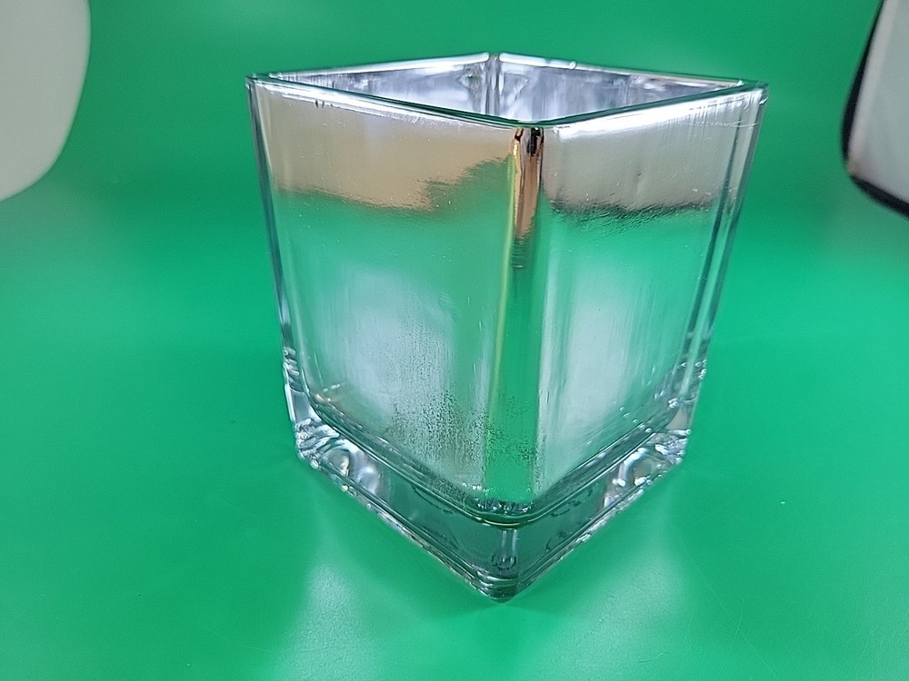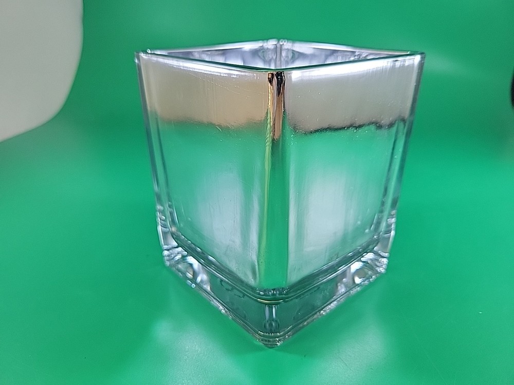 Our merchandise has been generously donated by the friends and families of Community Mainstreaming Associates (CMA). All proceeds from the sale of this item benefit CMA, a 501c3 charity supporting adults with intellectual and developmental disabilities. Thank you for your support. The Vintage Square Silver Glass Vase by Teleflora is a stylish and unique decorative piece for your home. With its modern design and mirrored cube shape, this 4" vase adds a touch of elegance to any space. Made of high-quality glass, this silver vase is perfect for displaying fresh flowers or as a standalone decorative item. Its sleek and timeless design makes it a versatile piece that can complement a variety of home decor styles.