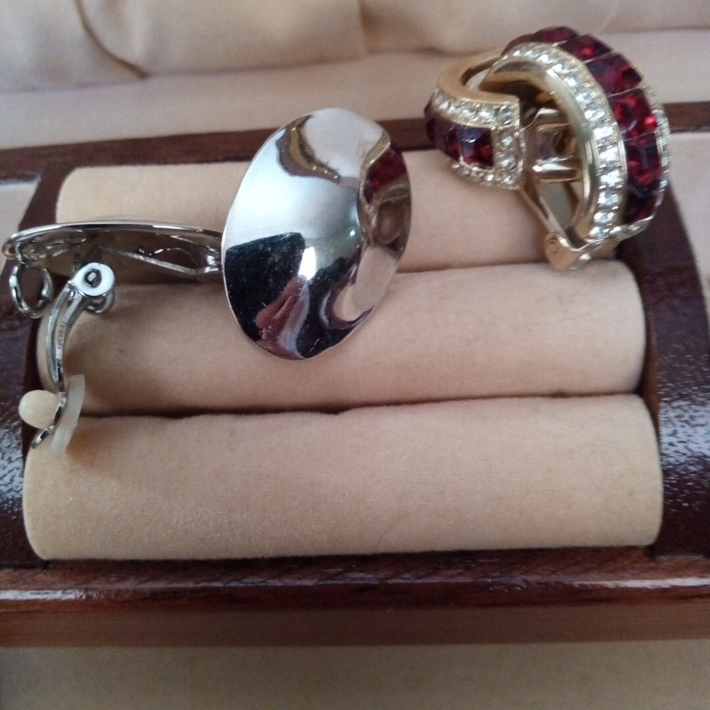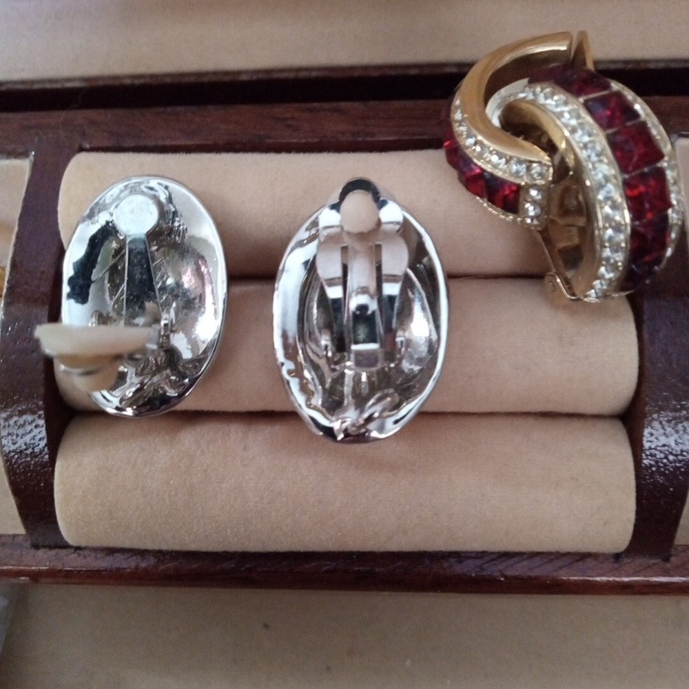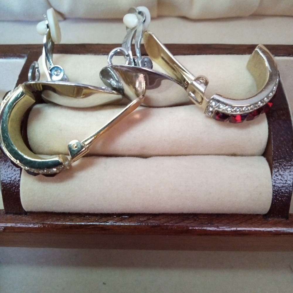 Seller Warranty: No Secondary Stone: Crystal Setting Style: Prong Antique: No Jewelry Department: Fashion Style: Huggie, Cuff Metal: Unknown Customized: No Department: Women Closure: Clip-On Main Stone: Crystal Handmade: No Brand: Unbranded Main Stone Color: Red Original/Reproduction: Original Type: Earrings Occasion: Anniversary, Engagement, Birthday, Wedding, Christmas, Mother's Day, Valentine's Day, Father's Day, Graduation, Christening, Confirmation/Communion Signed: No Theme: Beauty Ear Area: Lobe Material: Rhinestone Vintage: Yes Color: Red