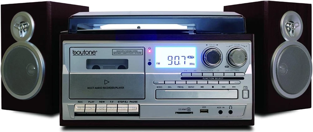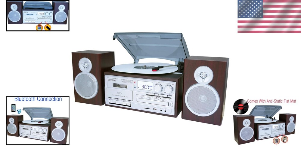 Vintage Silver Record Player with Bluetooth, Cassette & CD Player - Now in Style ‹ › ‹ › ‹ › ‹ › ‹ › ‹ › ‹ › ‹ › ‹ › Vintage Silver Record Player with Bluetooth, Cassette & CD Player Features: Classic style meets modern technology with Bluetooth wireless music streaming. Equipped with two separate stereo speakers for immersive sound experience. Record from Vinyl, Radio, and Cassette to MP3 format through USB or SD, making conversion a breeze. Compatible with virtually any Bluetooth enabled device: iPhone, Android, Tablet, and PC. Front load CD and cassette players for easy access and operation. Large display screen for clear visibility of settings and playback status. Headphone jack, RCA line out, and AUX input for versatile audio connections. Skip/Search Forward and Back, Repeat 1/Single Disc functionality. Random Play and Programmable Memory for customized listening experiences. Direct USB/SD recording from Turntable / Cassette / CD / AUX IN / AM/FM Radio. 1-year warranty for quality assurance. Benefits: Bring the nostalgia of vinyl records back to life with modern convenience. Easily convert your favorite vinyl, cassettes, and radio tunes into MP3s for easy portability. Enjoy high-quality sound with vintage aesthetics, appealing to both collectors and music lovers. Transform any room into a stylish music hub with its elegant silver design. Create a lasting legacy of your favorite music by saving them onto USB or SD cards. Why choose our Vintage Silver Record Player? Transform your listening experience with our Vintage Silver Record Player, a beautiful blend of vintage charm and modern functionality. With the capability to play and convert vinyl, cassette, and CDs to MP3 format without the need for a computer, it's never been easier to enjoy and preserve your beloved music collection. Immerse yourself in the world of sound with our high-quality stereo speakers and versatile connections. Don't settle for ordinary – elevate your music experience by ordering your Vintage Silver Record Player today! Shipping Free & Fast Shipping - We offer free shipping to most of the USA with a normal delivery time of 3-10 businessdays. However, due to various situations, additional delivery time (up to 3 weeks) may be required for some items. Alternative Carriers - We may use alternative carriers (e.g. USPS, FedEx, UPS, etc.) to ensure your package arrives safely and on time. Due to the use of multiple carriers, we are unable to provide a tracking number automatically. Handling Time - Orders are processed and shipped within 1-5 business days of receiving cleared payment. Shipping Restrictions - Shipping to Alaska, Hawaii, Puerto Rico, Guam, and other US territories may incur shipping charges or delivery restrictions. Please contact us before ordering, or your order can be refunded/cancelled. State Restrictions - There may be restrictions based on your state of purchase. For example, certain items may not be shipped to California due to state regulations. Contact for Tracking Updates - If you require tracking updates or have any concerns about the delivery of your order, please feel free to contact us, and we will be happy to assist you. Return Please see our ebay return policy. We do not accept return on most products. This is to avoid customers mis-using ebay returns. All sales are final. Please be sure to check the return policy listed at the top of the listing. In rare cases, we may accept returns, if the buyer pays both ways shipping and 20% restocking fee. If you are un-sure of return policy of a particular item, please ask before buying. Payment We accept all major credit cards, PayPal, and Apple Pay for your convenience. Your payment information is secure and encrypted to ensure a safe and seamless transaction. Please complete your payment within 3 days of purchase to avoid any delays in shipping. Feedback Your feedback is extremely important to us. We strive to provide the best products and customer service possible. If you are satisfied with your purchase, please take a moment to leave us a positive review. If you have any concerns or issues with your order, please contact us before leaving negative feedback. We are committed to resolving any problems and ensuring your satisfaction. Contact Us If you have any questions or concerns, please feel free to reach out to our customer support team. You can contact us through the eBay messaging system. We are available Monday to Friday, 9:00 am to 5:00 pm EST, and we will do our best to respond to your inquiry within 24 hours. Buy it now and enjoy a pleasant shopping experience! UPC: Not Set Screen Size: Not Set Unit Quantity: 1 Item Height: Not Set Item Length: Not Set Item Weight: 13 pounds Item Width: Not Set Year Manufactured: Not Set Features: Bluetooth,Ability to convert vinyl records to MP3,Skip/Search Forward and Back,Repeat 1/Single Disc,Random Play,Programmable Memory Connectivity: Bluetooth,Wireless,USB,AUX,SD Audio Outputs: Headphone Jack,RCA line out Speed Settings: 78RPM MPN: Not Set Brand: Unbranded Model: Bluetooth Record Player Turntable Color: Silver Pitch Range: Not Set Type: Record Player Turntable Band: AM/FM Product Line: Not Set Unit Type: lb Plug Regional Fitment: Not Set Generation: Not Set Country/Region of Manufacture: Not Set Manufacturer Warranty: Not Set