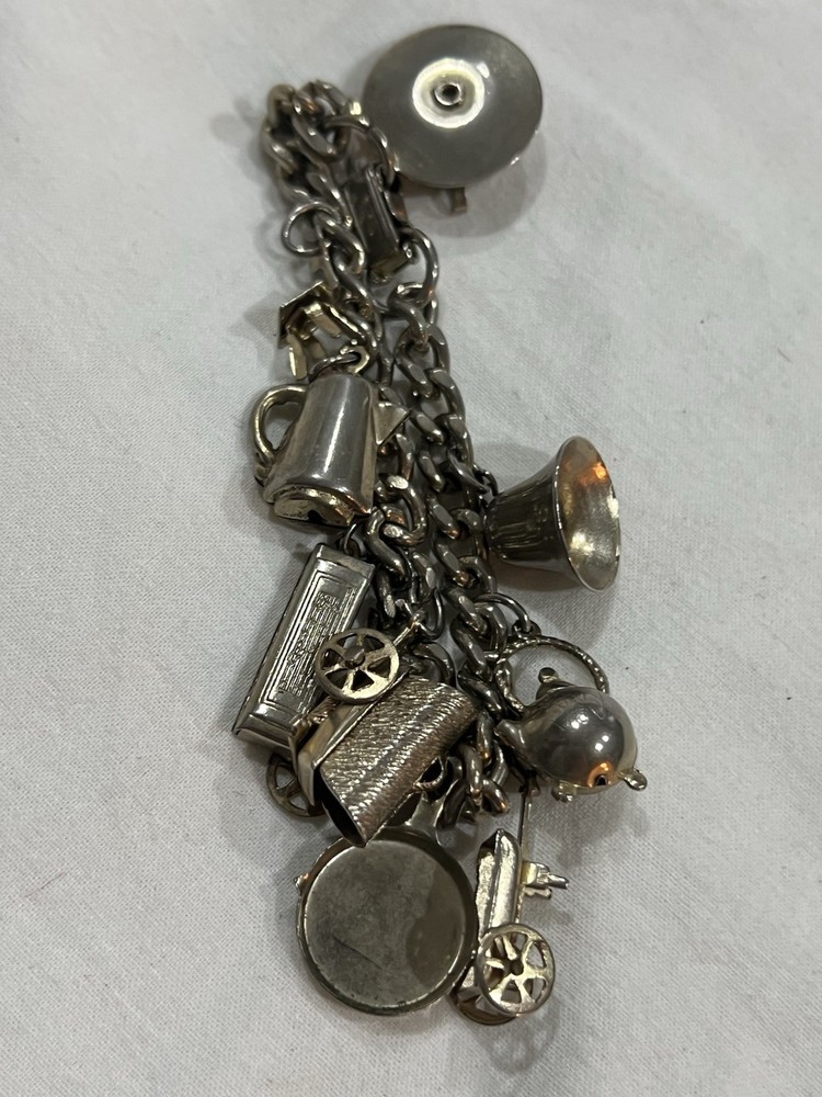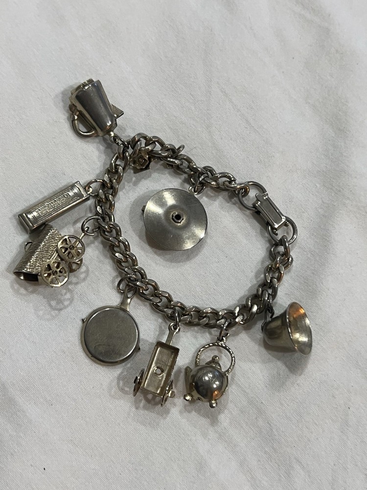 $ 184.41Vintage Sterling Silver Chain Bracelet & Various Charms, 7.5”, 30.1 g