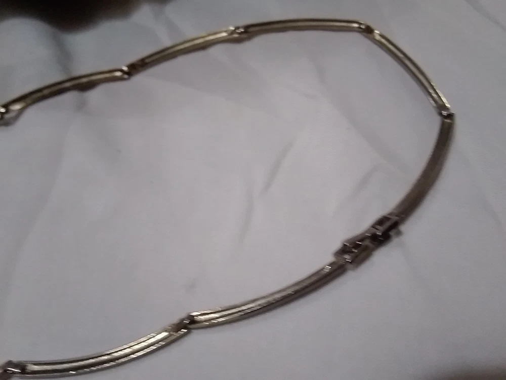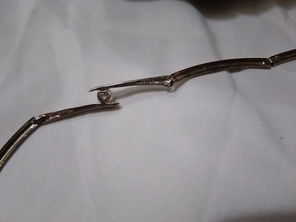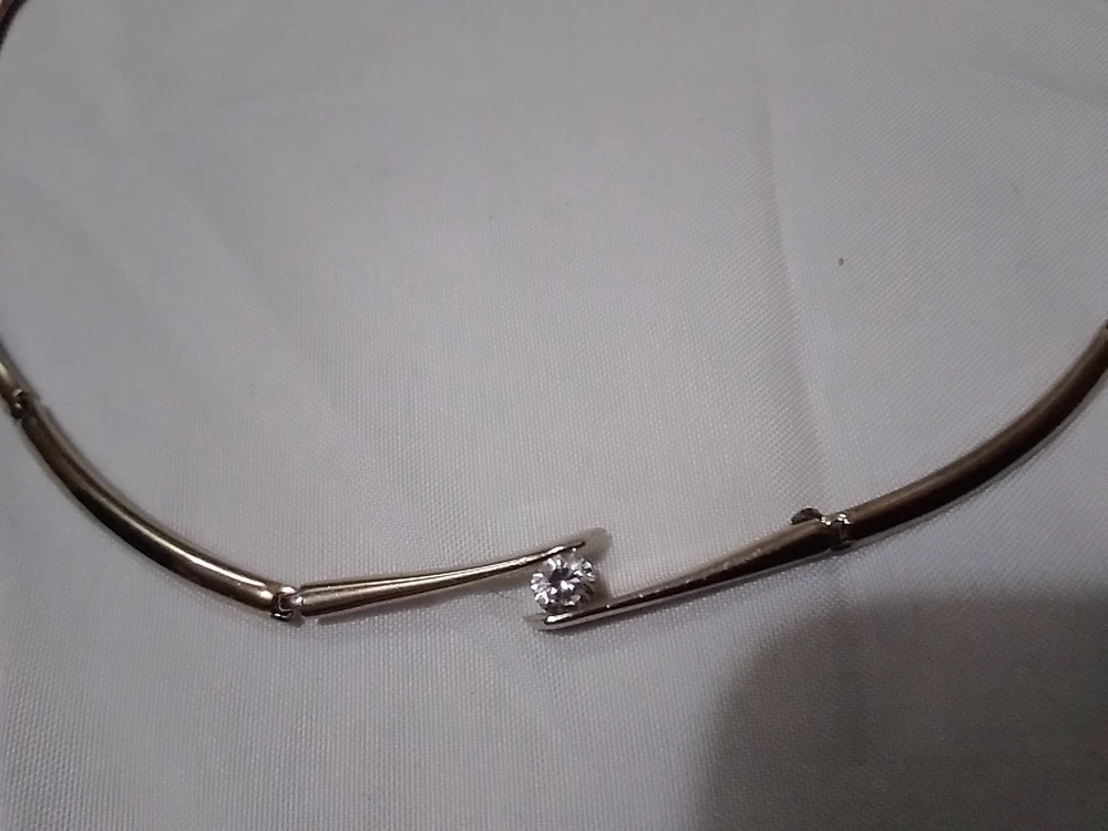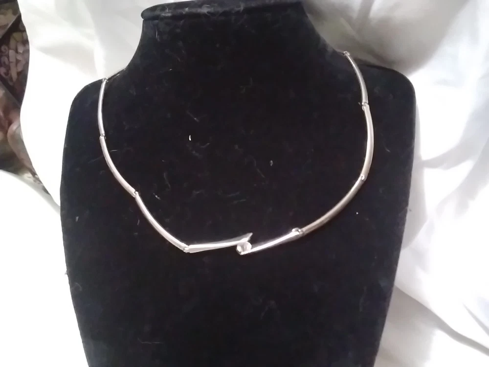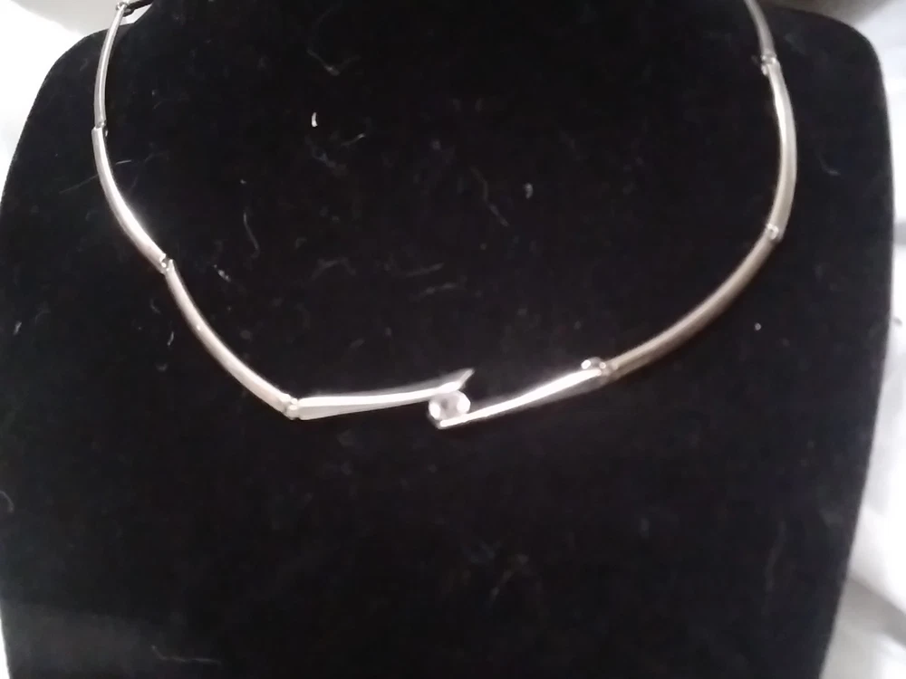 Elevate your accessory game with this vintage silver-tone collar necklace, a timeless piece that blends classic elegance with a touch of modern flair. Adorned with sparkling white rhinestones and a central crystal that catches the light with every movement, this necklace is designed to complement a variety of outfits, from formal evening wear to casual day ensembles. Crafted with precision, the necklace features a sleek silver metal chain and a secure foldover clasp, ensuring comfort and ease of wear. Measuring 16 inches in length, it sits gracefully at the base of the neck, offering a polished look for any woman who appreciates the charm of vintage jewelry.