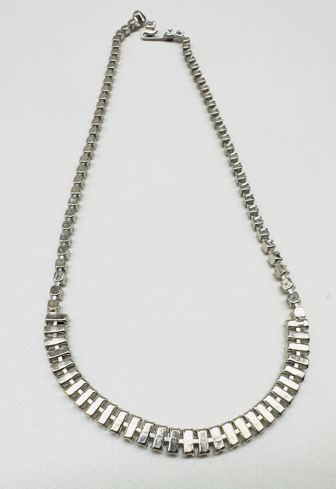 Vintage Silvertone Baguette & Prong Set Rhinestone 16” Choker Necklace No missing stones No discoloring