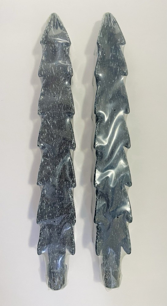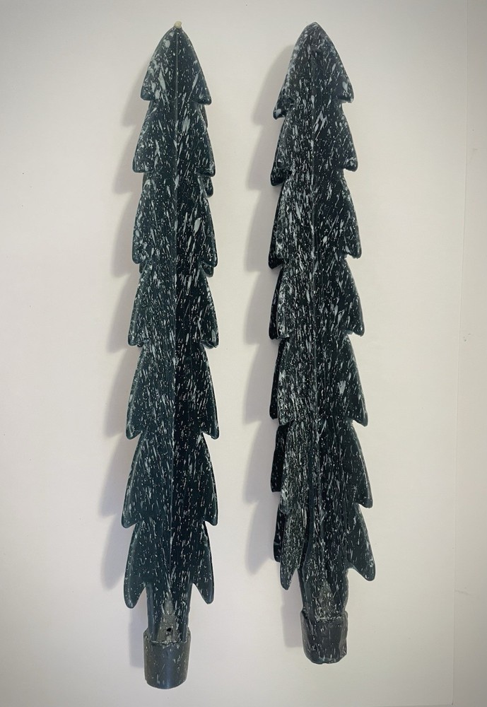 * 2 pairs available * Both are new * First order gets the ones wrapped in plastic * Both come in their original box Elevate your holiday ambiance with the Vintage Silvestri Christmas Tree Candles, each standing 12 inches tall. These unscented, green-colored taper candles feature a festive Christmas tree shape that will add a touch of vintage charm to your holiday decor. The set includes two candles, allowing for a symmetrical or complementary display on your mantel, windowsill, or table. Crafted from high-quality wax, these decorative pieces are designed to bring a warm, unscented glow to your living space without the need for customization. Their original box serves as a quaint storage solution or an attractive presentation for gifting. These Silvestri tree candles are a simple yet elegant way to celebrate the season's joy and tradition.