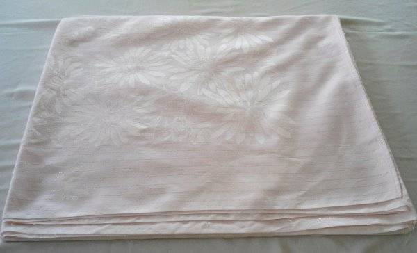 Vintage Simtex Pink Cotton Damask Tablecloth Silver Regency Thread 82" This is a cute vintage tablecloth made with soft silky cotton or rayon fabric, medium weight, the color is pale pink with silver metallic thread. Measurement is 63 x 82 inches, . It's in very good vintage condition, I found no holes or obvious damage. It's clean and fresh and ready to be used. I do have other vintage linens, fabric and jewelry on auction and am happy to combine shipping. See my other listings for more great items! Payment is expected within 7 days unless other arrangements have been made. All domestic orders will be shipped next day, Monday through Friday. International orders are shipped Monday, Wednesday and Friday. Add to Favorite Sellers Other Items txzj pxzj28697 txzj-11 txzj85 txzj115