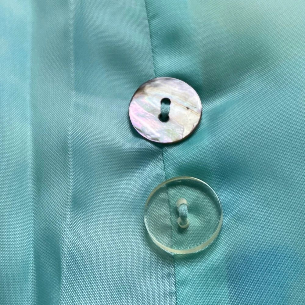 This blouse arrived promptly, appropriately packaged in a soft mailer. I pulled a beautiful top from the package; the color as vivid as new. Beautiful! The described measurements were accurate and provided a good fit. This top is absolutely like-new. Thanks, seller, for this great piece to add to my wardrobe. A+++ experience!