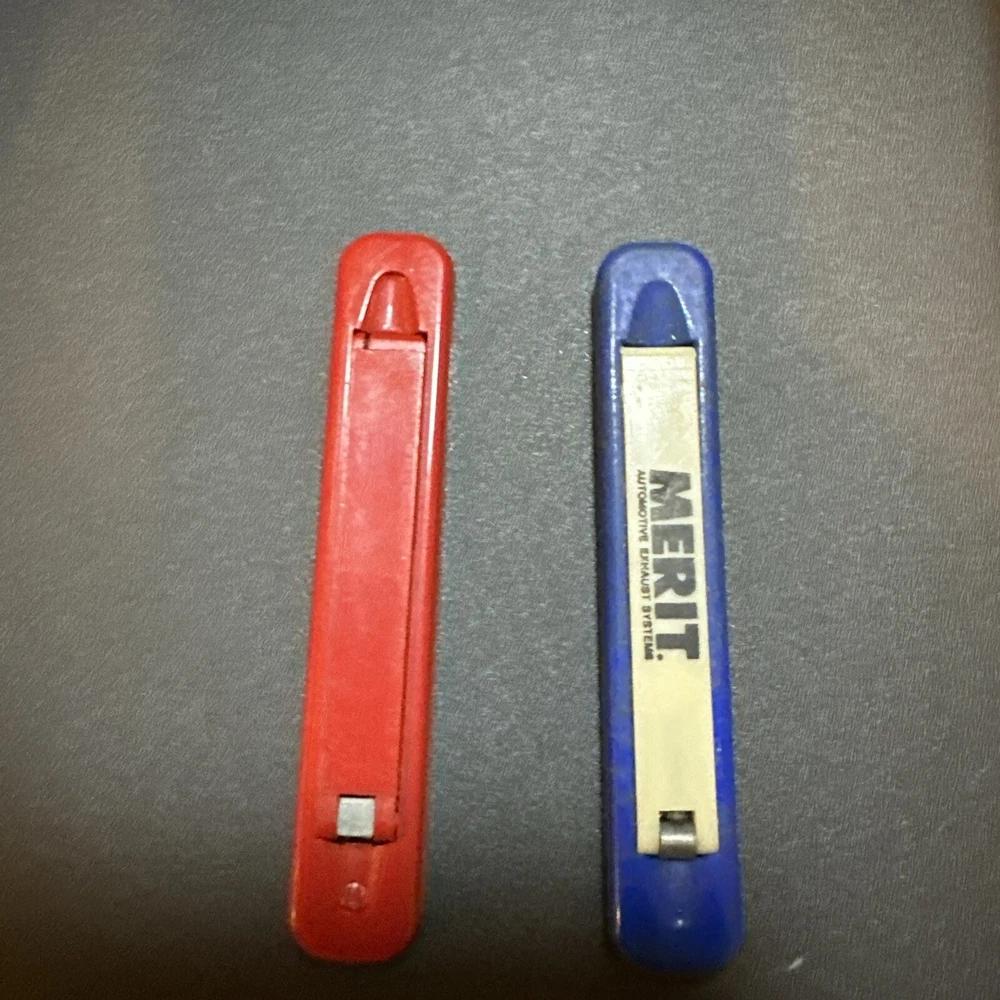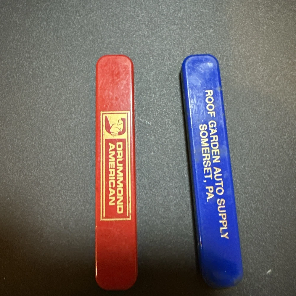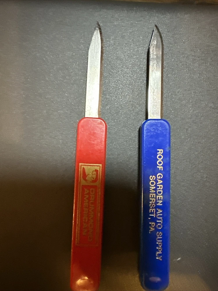 Vintage Slide Out Advertising Knives 2 Knives One Red One Blue