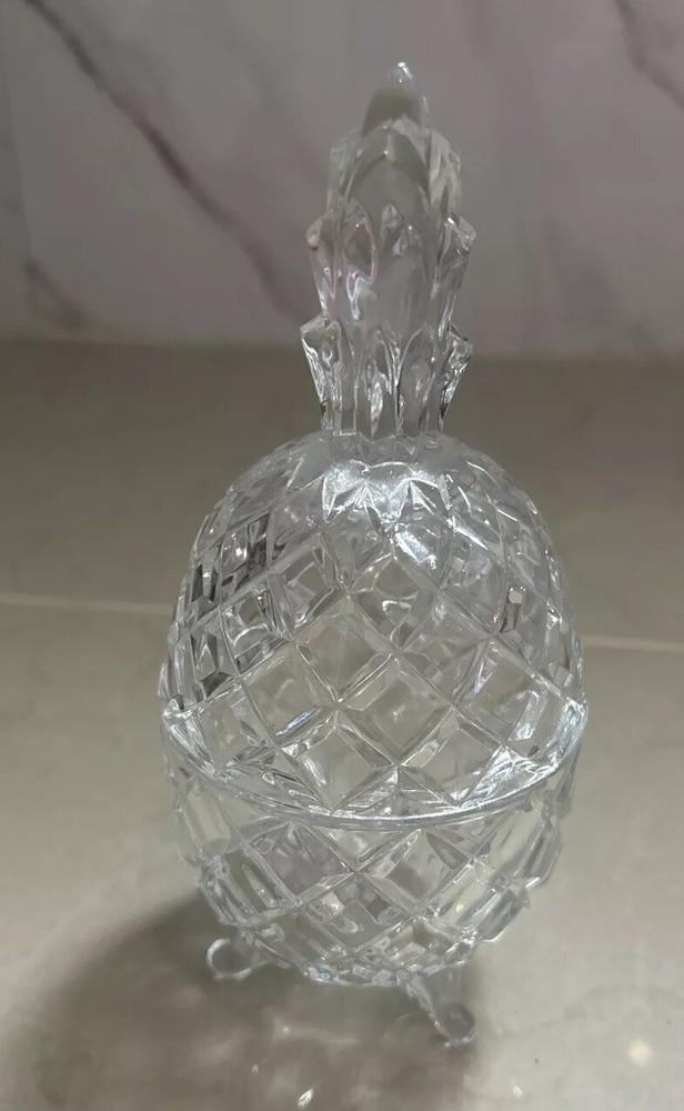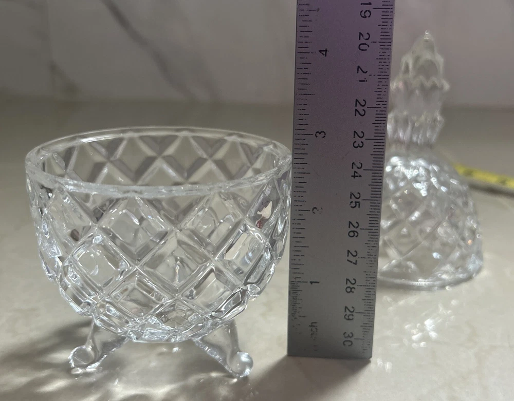 Vintage Slovakian Crystal Pineapple Candy Trinket Dish Jar Tri Footed W/ Lid Pre owned
