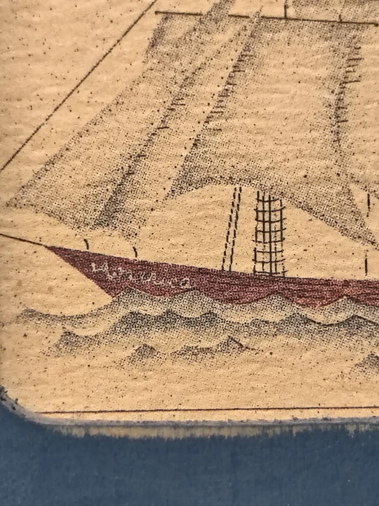 Small Decorative Wooden Wall Hanging With A Detailed American Sailing Ship Print In The Center. Country blue with sanded edges. This is a very nice, unique addition to any nautical decorated room. Please see photos for details of measurements and style. Thank you!