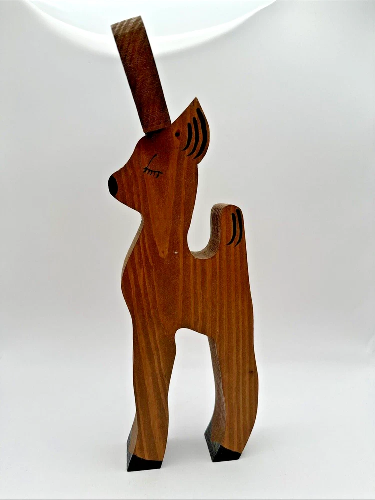 Vintage Small Brown Wooden Reindeer, 13” Holiday Christmas
