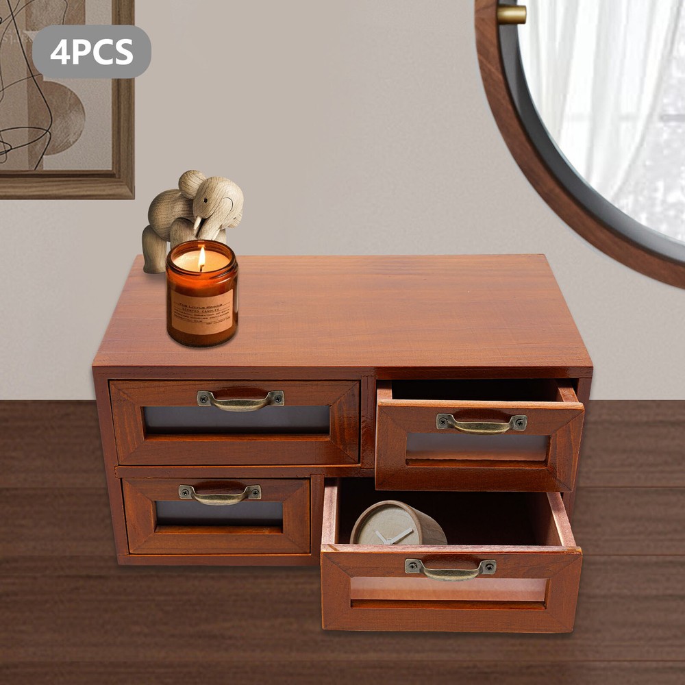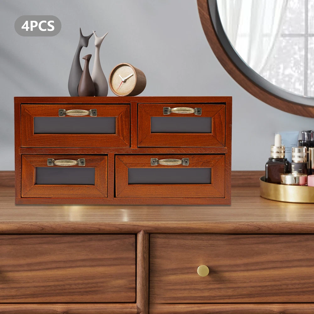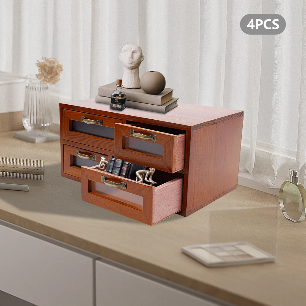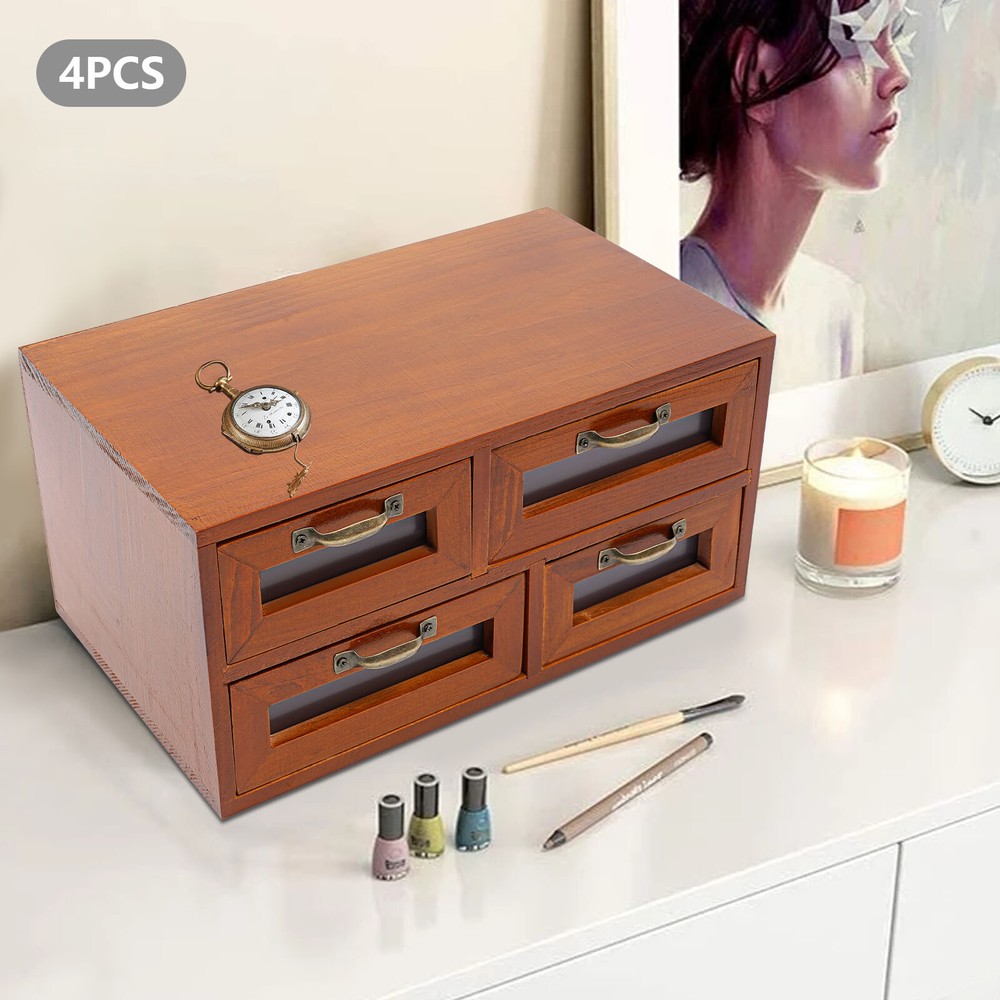 Vintage Small Wooden Desktop Storage Box Drawer Display Shelf Organizer Craft US Description Maintaining cleanliness and order in our lives can have a positive effect on our mood and overall well-being. With a total of 16 drawers, our 4 pieces of 4-drawer desktop drawer organizers provide enough storage space while boasting a beautiful and functional design. With this product, you can organize your belongings effortlessly and efficiently, leaving you feeling structured and at ease. Take it with you to enjoy a tidy life! Key Features Made to Last: This product is made of high-quality solid wood and iron, ensuring a stable structure. It is environmentally friendly, sturdy, long-lasting, and not easy to deform. Meet Your Needs: Our product consists of four 4-drawer desktop drawer organizers that can be easily adapted to meet your needs and preferences. Excellent Organizer: 16 drawers(8 large drawers and 8 small drawers) allow you to sort charging cables, cosmetics, Chinese herbal medicines, cards, pictures, and other small daily necessities, creating a cleaner and tidier home/office environment. Exquisite Appearance: Natural solid wood presents a beautiful texture, filled with the flavor of the precipitation of the years, revealing a strong retro flavor, reflecting the unique charm of the home decoration. DIY Arrangement : The 4 pieces allow you to use them individually, stack them against a wall, or place them side by side on a table so you can make better use of the available space. Effortless Cleaning: It has a smooth surface and simple structure, so you only need to wipe the dust off with a towel. Ideal Gift: With good practicability and a classic appearance, it can be used as an ideal housewarming/holiday gift for parents, friends, and lovers so that they can also enjoy a more exquisite life. Good Customer Service: We aim to provide quality products and services. If you have problems, please feel free to contact us. We will reply and solve the problem for you as soon as possible. Details Drawer Handle: It allows for easy opening of the drawer for convenient access to your belongings. Clear Windows: This design allows you to see the items categorized and stored inside, making it easy to find. Application It can be placed in the bedroom, living room, office, study room, children's room, store, and other places to store charging cables, cards, pictures, cosmetics, herbs, and more. Specification Material: Wood, Acrylic, Iron Color: Brown Style: Vintage Shape: Rectangular Assembly Required: No Mounting Type: Tabletop Number of Pieces: 4 Number of Drawers of Each Piece: 4 Number of Total Drawers: 16 Each Large Drawer Size(L*H): 13*5.4cm/5*2in Each Small Drawer Size(L*H): 10*5.4cm/4*2in Product Overall Size: 60*18.5*30.4cm/23.6*7.3*12in Package Size: 66*21*36cm/25.98*8.27*14.17in Each Piece Load Capacity: 4kg/8.82lbs Total Load Capacity(4 Pieces): 16kg/35.27lbs Gross Weight: 7.5kg/16.53lbs Net Weight: 7kg/15.43lbs Package Included 4*4-drawer Desktop Drawer Organizers Notes Please allow the slight color difference caused by the shooting light and 1-3cm error due to manual measurement, and make sure you do not mind before ordering. Payment Delivery details Terms of sales About us Contact us Payment We accept ebay payment 。 Fees such as import duties, taxes are not included in the item price or shipping costs. These charges are the buyer's responsibility. Delivery details Shipping: 2-9 working days to: USA Terms of sales We maintain high standards of excellence and strive for hundred percent customer satisfaction. Feedback is very important to us. We hope that you contact us immediately before you give neutral or negative feedback, so that we can address your concerns. It is impossible to address issues if we do not know about them! About us Your satis faction is our ultimate goal. We work hard to earn your trust and future business. Our certified technicians have tested each item before shipping. The unit comes with 1 year limited warranty on all manufacturing defects. a) If you receive a defective item, you may return it or ask for a discount. Please contact us within 14 days after you receive the package. b) What you returned must be intact and in its original packaging as re? u. Customer is responsible for shipping costs of the returned item. c) We will cover the cost of shipping back t with the shipping rate indicated in the registration page. We will send you a new unit or refund the full payment you paid. Thank you. Contact us Business Hour Business Hour: Monday To Friday: 8:30 AM to 5:00 PM (Beijing China time) Due to time zones, our reply to your questions may not be immediately. But within above working time, we will reply your email within 24 hours. If it's non-workdays, please kindly be patient and wait till Monday. Please contact us with ebay message. Please feel free to contact us if you have any questions. Monday To Friday: 8:30 AM to 5:00 PM (Beijing China time) Due to time zones, our reply to your questions may not be immediately. But within above working time, we will reply your email within 24 hours. If it's non-workdays, please kindly be patient and wait till Monday. Please contact us with ebay message. Please feel free to contact us if you have any questions.