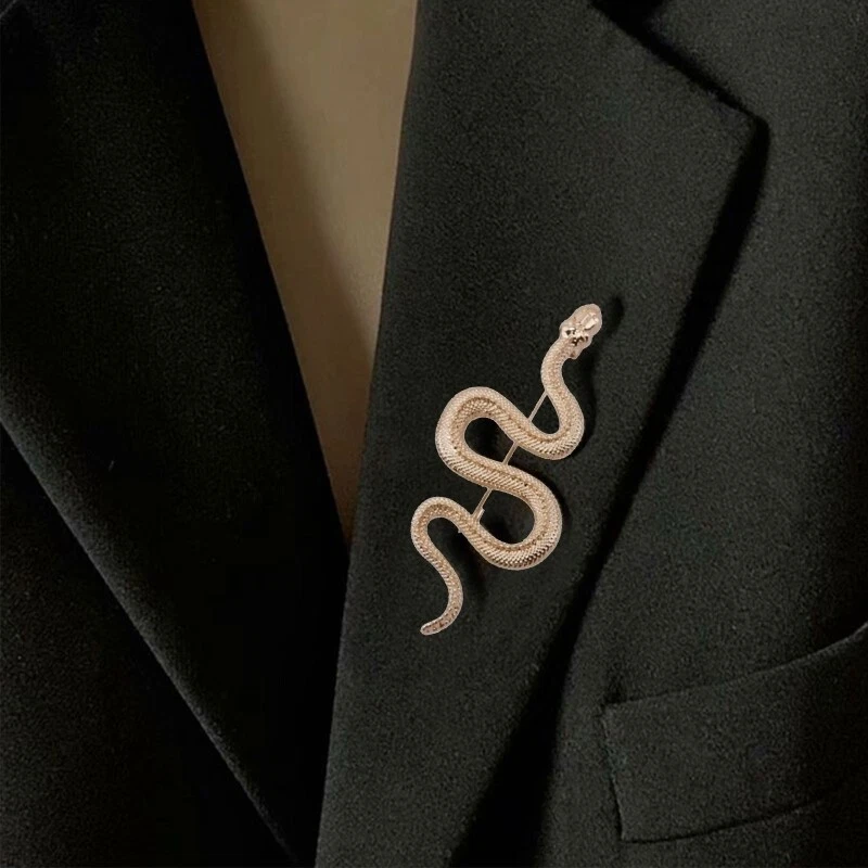 Vintage Snake Animal Large Safety Pin Brooch for Women Bag Scarf Accessory