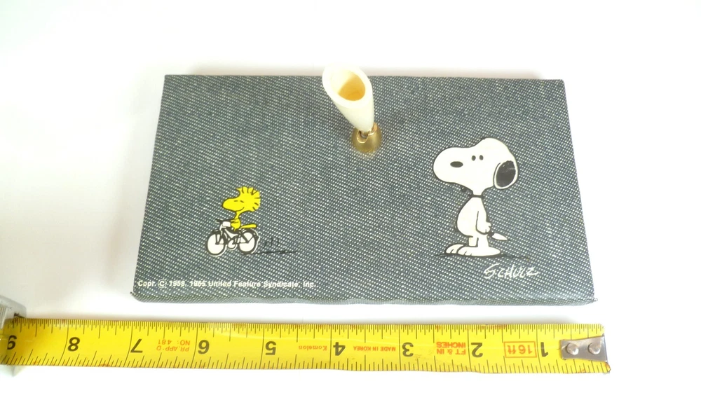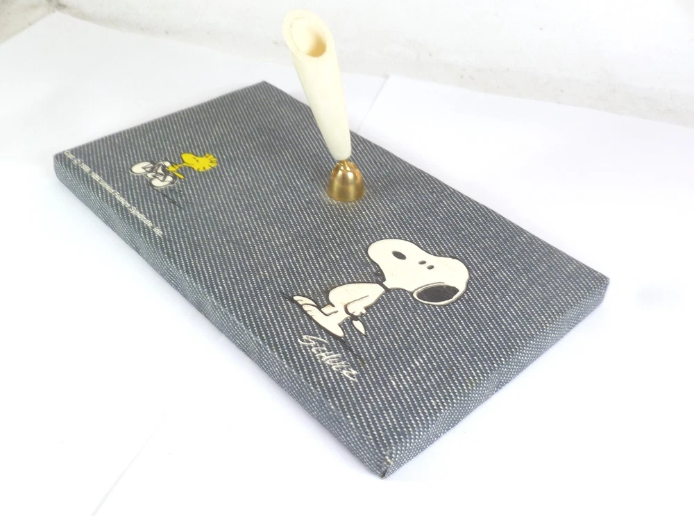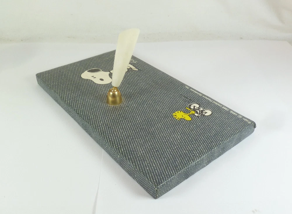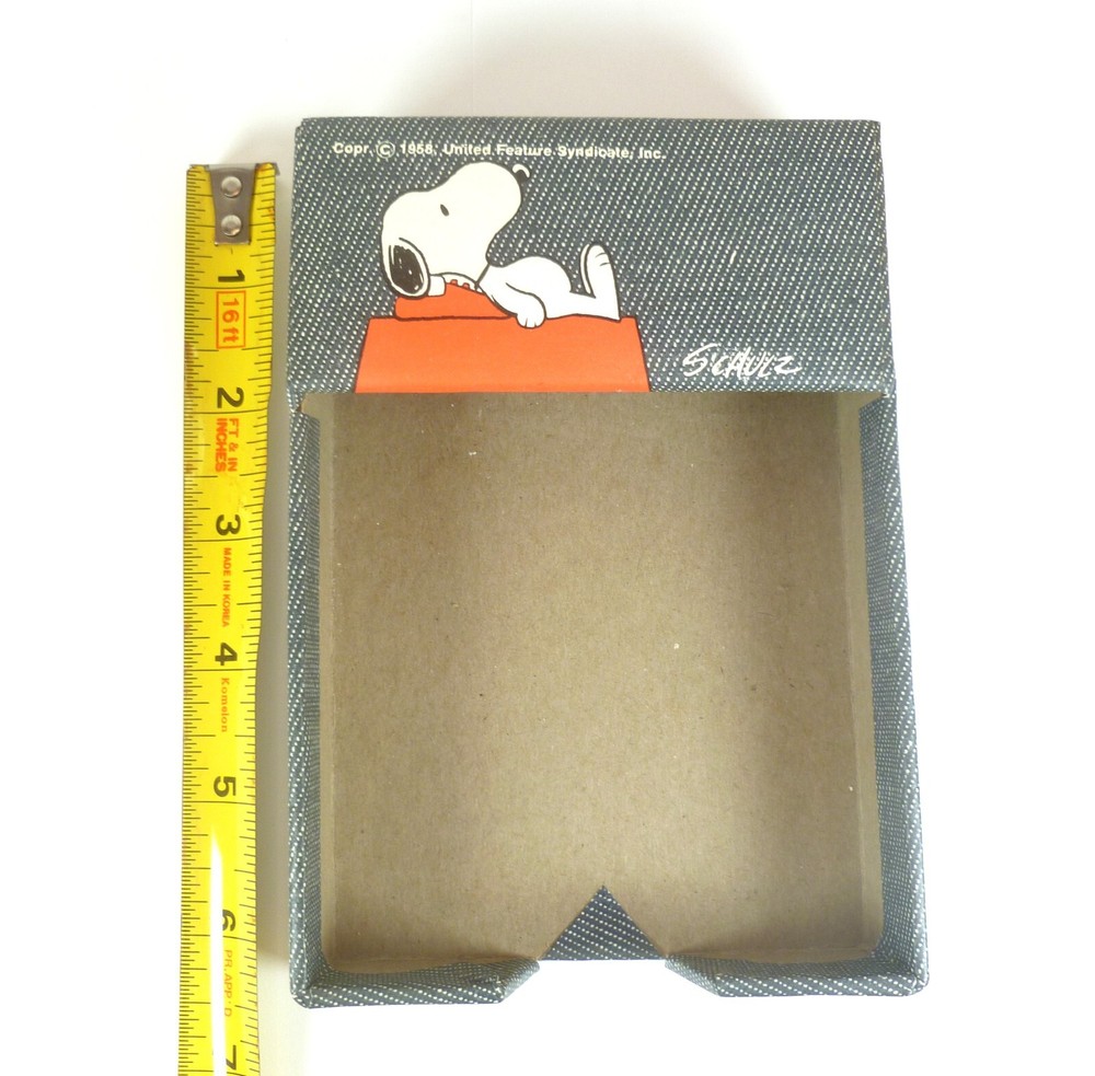 Up for sale is 2 matching Snoopy Desktop Accessories. A pen holder and a notepad holder. The pen holder measures 7" X 4" and has bubbling to the surface. The notepad holder measures 6 1/4" X 4 1/4"....the inside of the notepad holder is for 6" X 4" paper/pad.