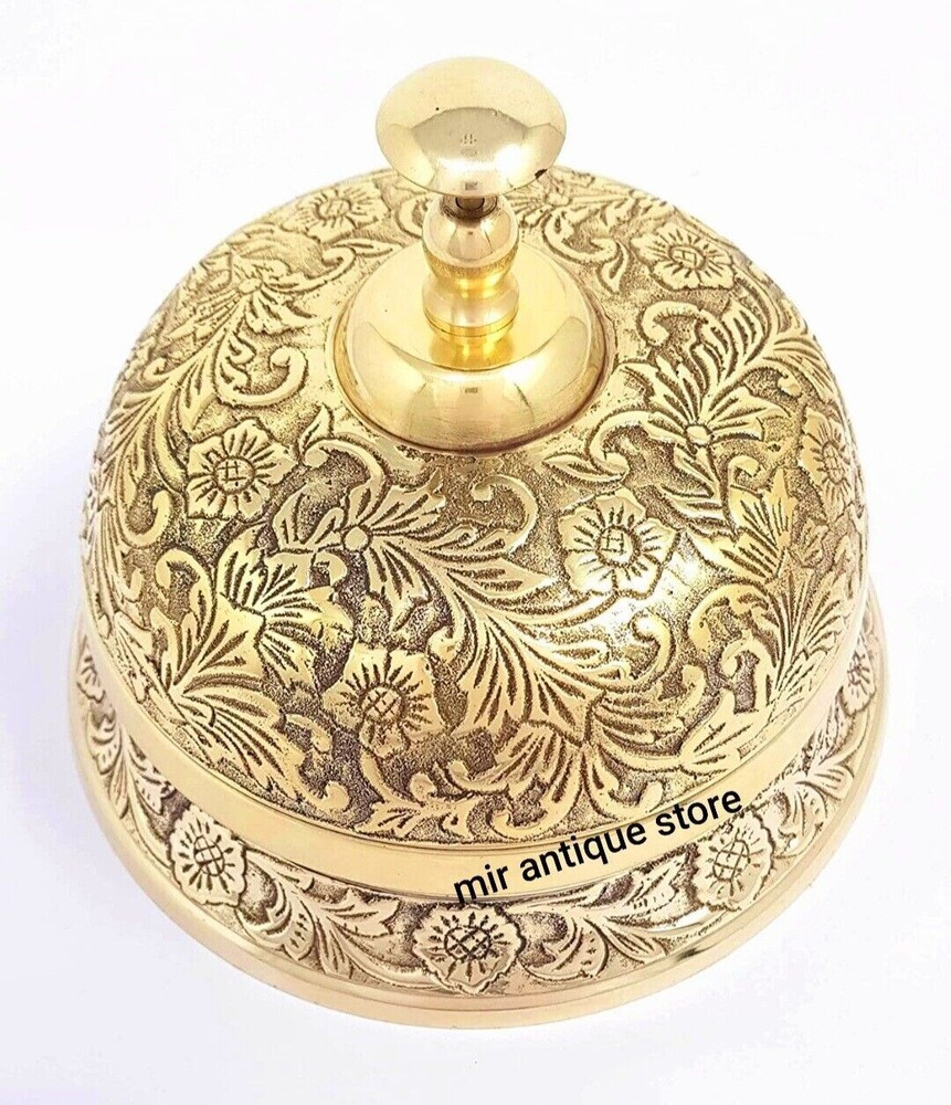 Vintage Solid Brass Ornate Desk Call Bell for Reception