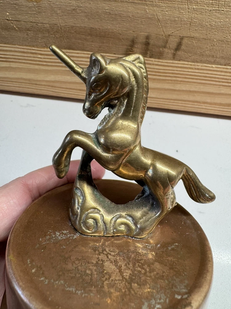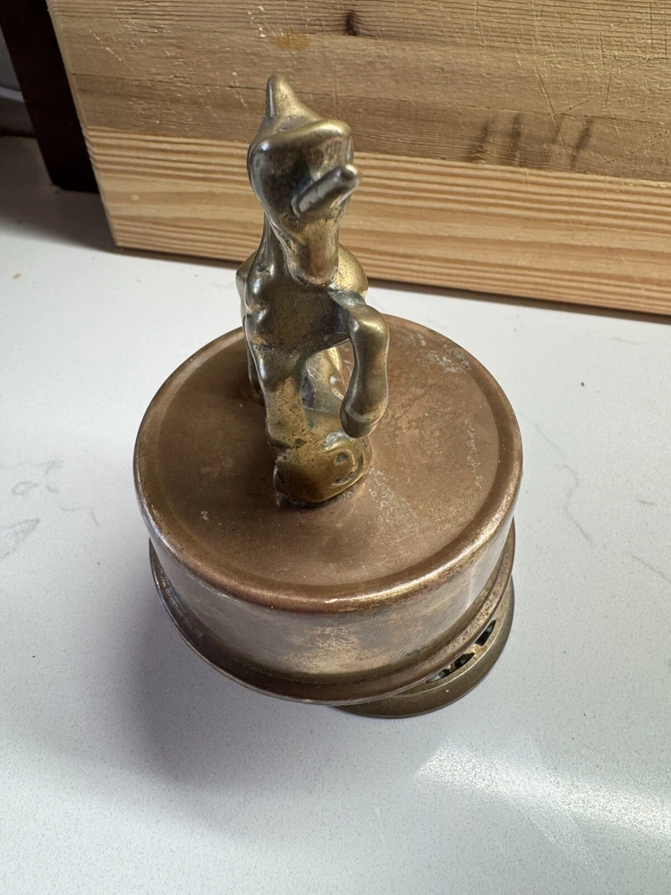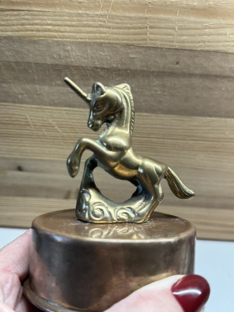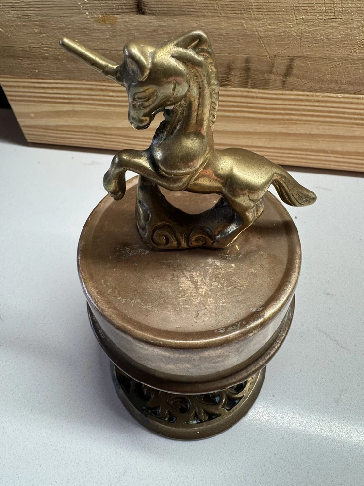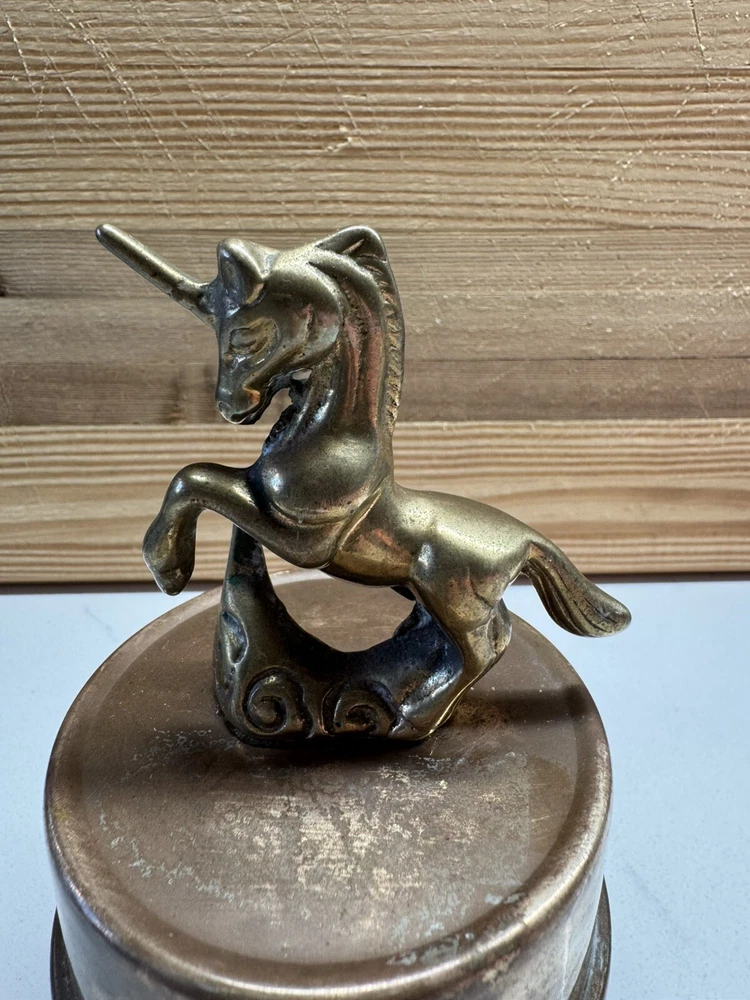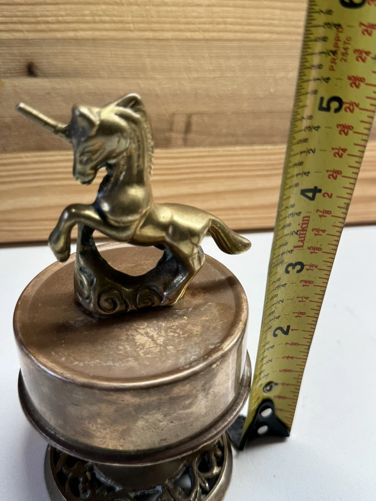 Vintage Solid Brass Unicorn Revolving Music Box 5" Tall