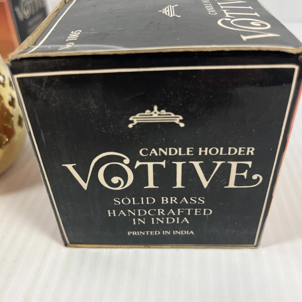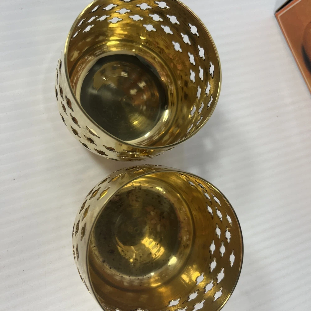 Vintage Solid Brass Votive Tea Candle Holder India Lot 2 Boxed in original packaging, very slight wear to finish, shiny, appears unused, see photos see photos for measurements We have multiples available at this writing Check our storefront for a current COUPON CODE for discount on purchases of multiple items We offer discounted shipping for purchases of multiples and volume pricing on most items All items come from smoke free storage environment Ships within 1 day of purchase, most shipped same day Be sure to visit our store for many other items We are a general store, so you never know what might come in CLICK HERE and Visit Our eBay Store: Robin's General Store