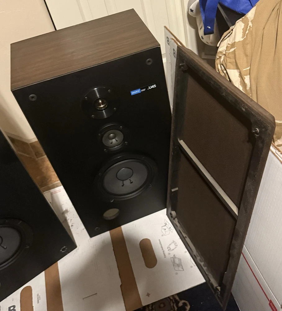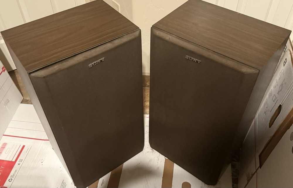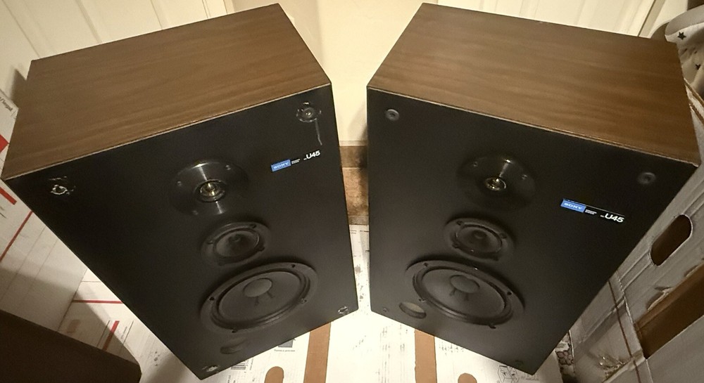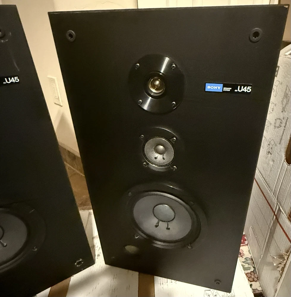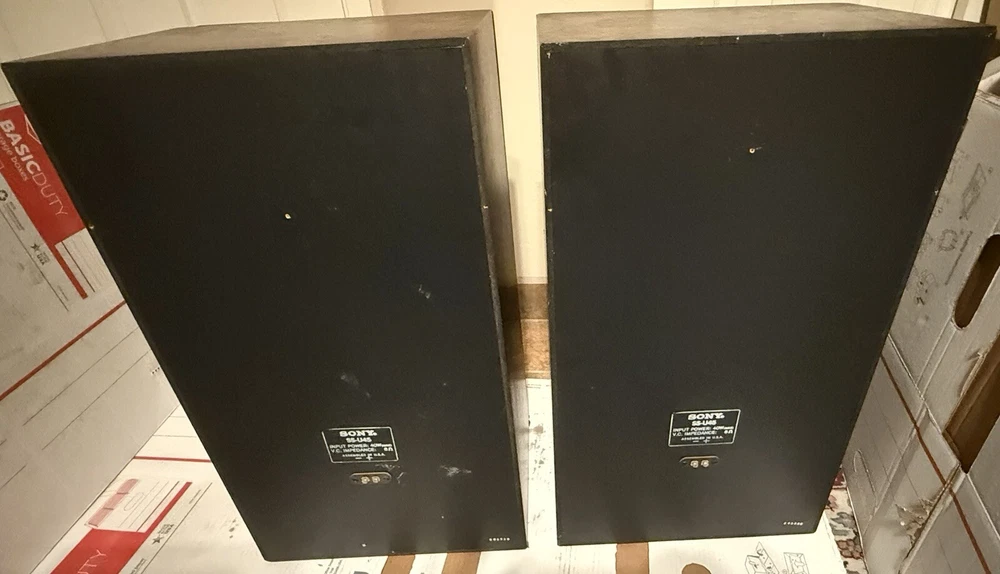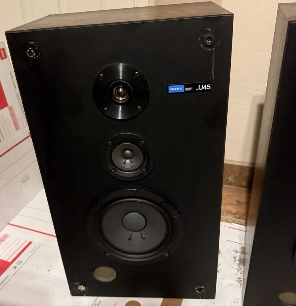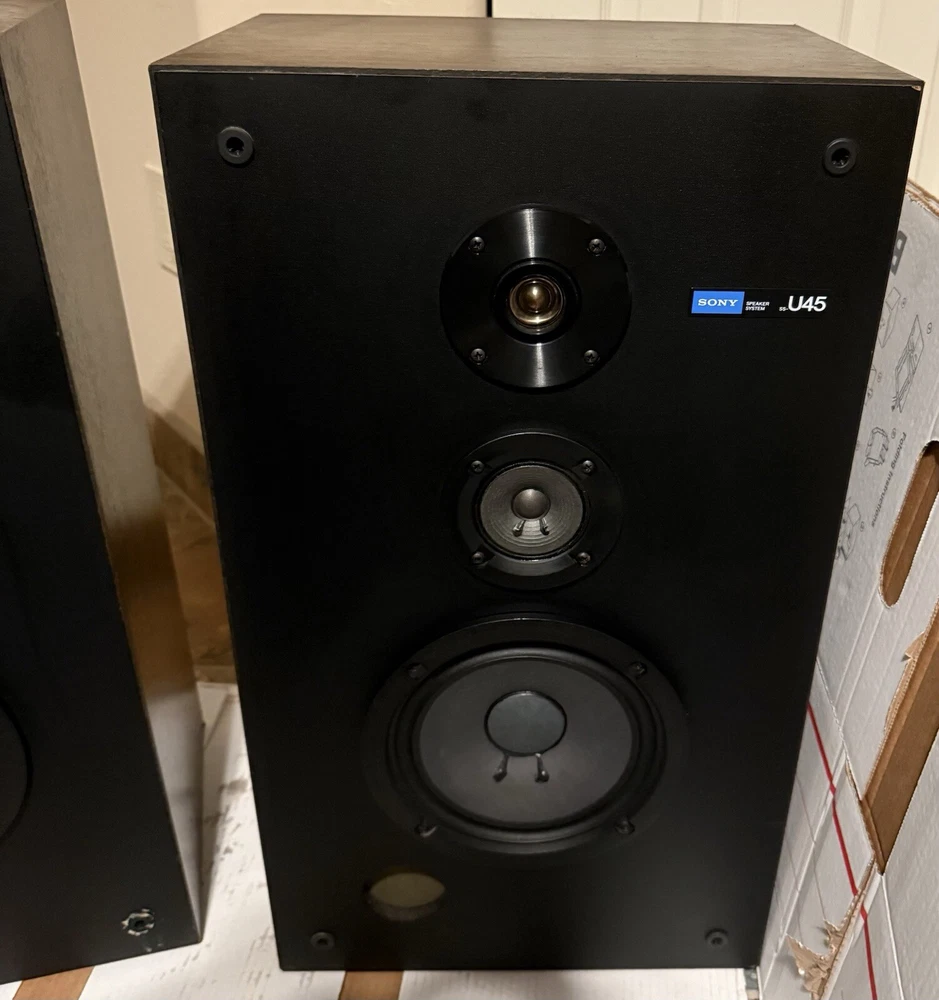 VINTAGE SONY SS-U45 3-WAY SPEAKERS PAIR TESTED AND SOUND GREAT MADE IN USA!! THESE SPEAKERS ARE USED IN VERY GOOD CONDITION. THEY HAVE BEEN TESTED AND DO SOUND GREAT. THEY HAVE SOME VERY MINOR SCUFFS BUT NOT REALLY NOTICEABLE (PLEASE SEE ALL PHOTOS) 1 SPEAKER GRILL HAS BROKEN TABS EXEPT FOR 1 BOTTOM ONE SO STILL ATTACHES TO SPEAKER BUT DOES NOT CONNECT TO TOP SO WELL. (DOES NOT EFFECT SOUND QUALITY (PLEASE SEE PHOTOS). . OTHERWISE IN VERY GOOD CONDITION. (PLEASE SEE ALL PHOTOS) THESE SPEAKERS HAVE BEEN TESTED AND DO SOUND GREAT. (PLEASE SEE ALL PHOTOS.) THIS SET COMES WITH EVERYTHING PICTURED. THESE WERE RARELY USED AND ARE STILL IN VERY GOOD CONDITION FOR THEIR AGE. THEY TRULY SOUND GREAT WITH A TON OF DETAIL FOR ANY ONE WHO ENJOYS SURROUND SOUND WITH THEIR MOVIES AND TV AS WELL AS ANY AUDIOPHILE OR MUSIC LOVER. WHETHER THE SOURCE BE FROM A TURNTABLE, OR CD PLAYER RUNNING THROUGH YOUR RECEIVER, OR BLU-RAY/DVD PLAYER, THESE SPEAKERS TRULLY SOUND AMAZING. VERY GOOD CONDITION. MINOR WEAR OTHERWISE LOOKS GREAT. THERE ARE SOME VERY MINOR SCUFFS . (PLEASE SEE ALL PHOTOS.) OTHER THEN THAT, VERY GOOD CONDITION. SHIPPING TO LOWER 48 STATES ONLY. CANNOT SHIP TO ALASKA, HAWAII, OR PUERTO RICO. I will get this delivered to you ASAP. It will be shipped out same day or next business day. Thanks for looking!!! Please take a look at my other Auction listings:) Have a great day:)