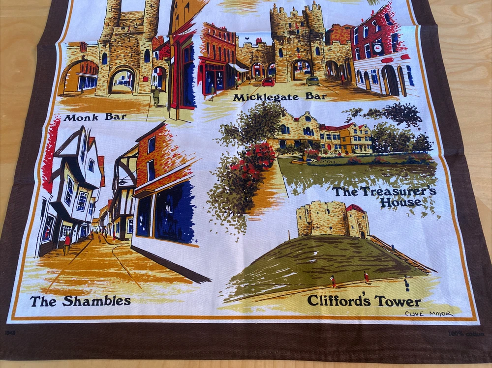 Vintage Souvenir YORK Kitchen Dish Towel WALL DECOR CLIVE MAYOR 19 x 28.5” New