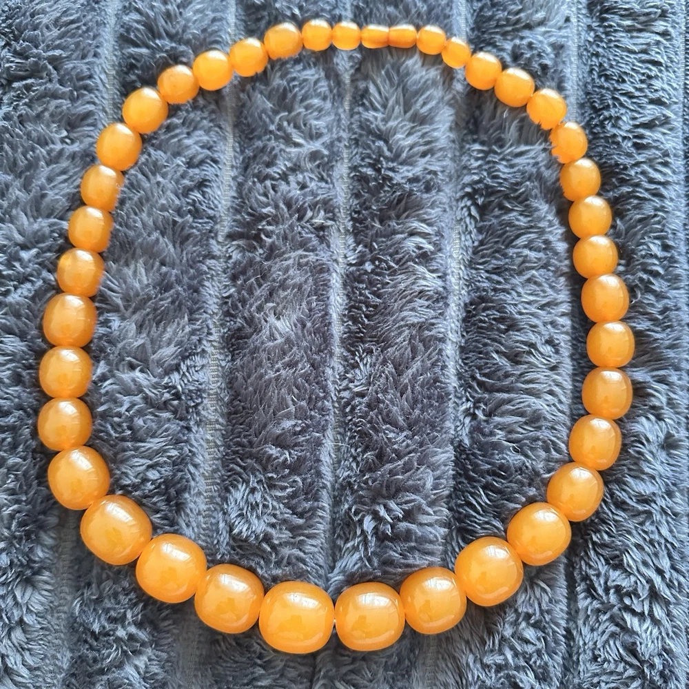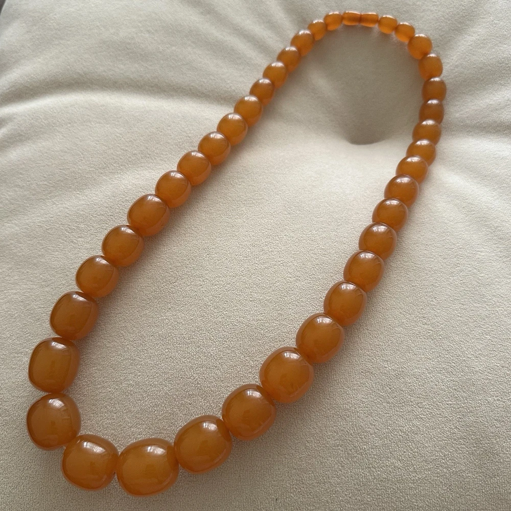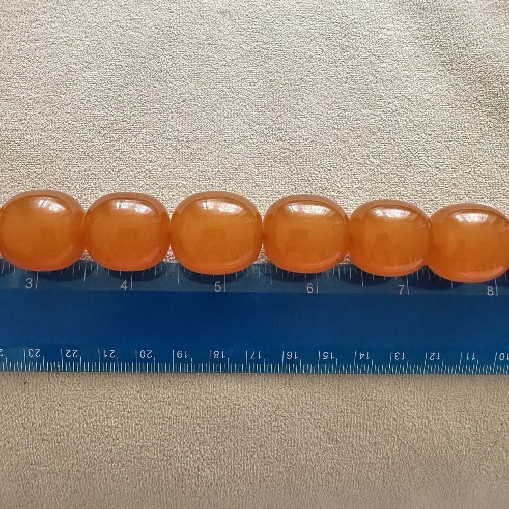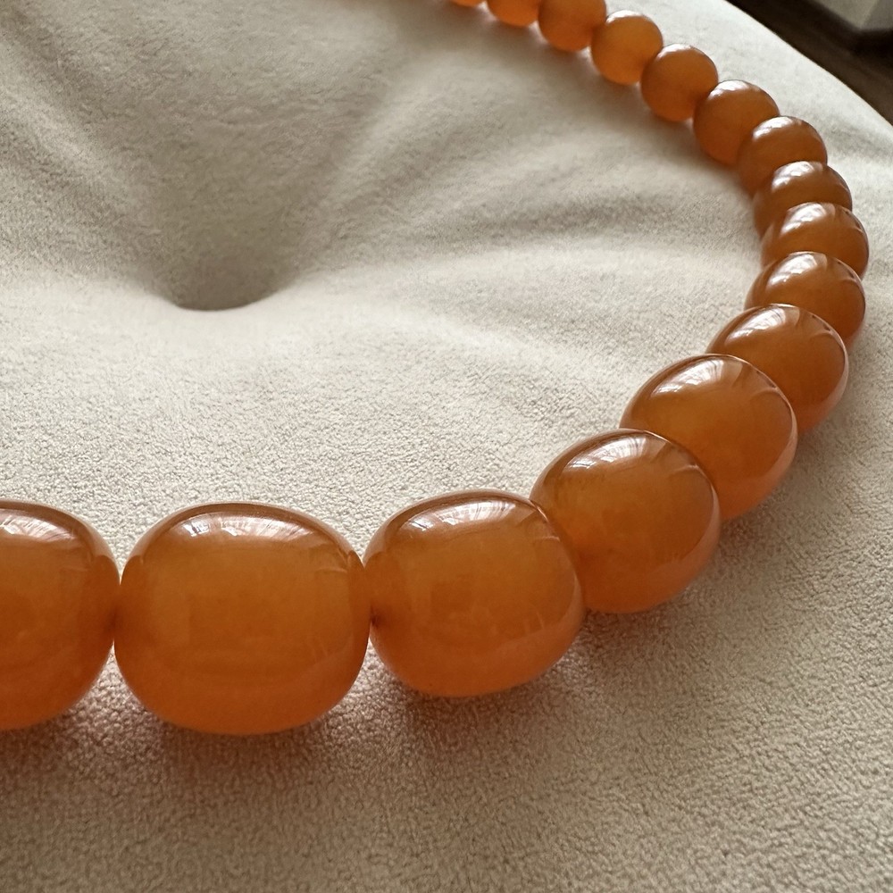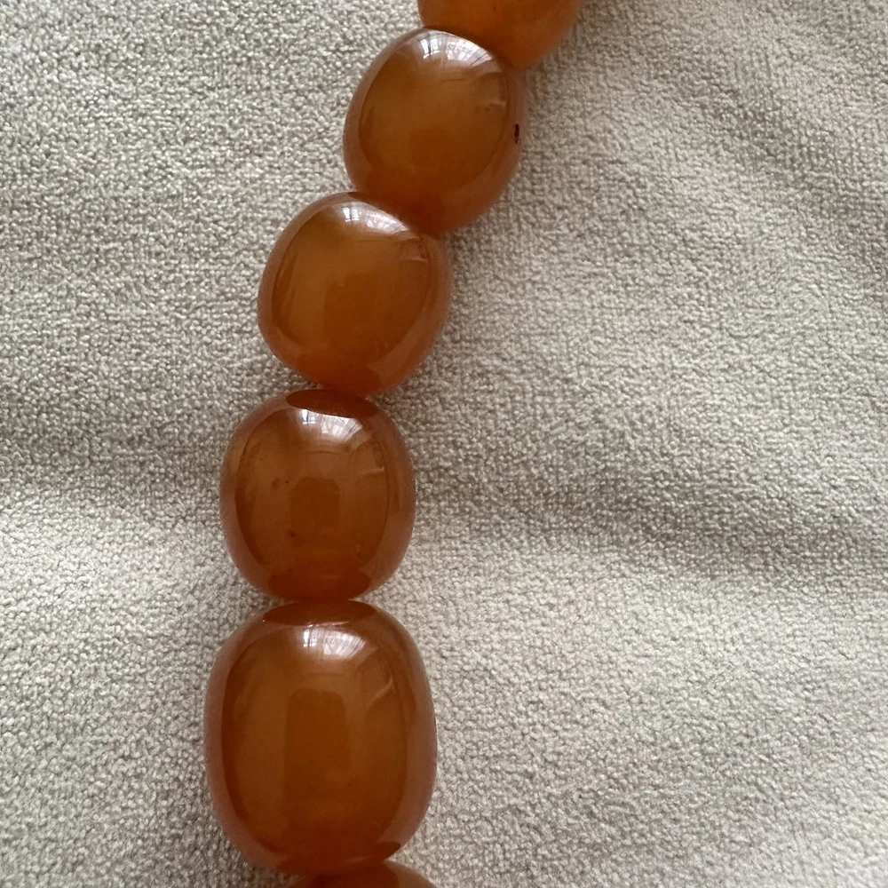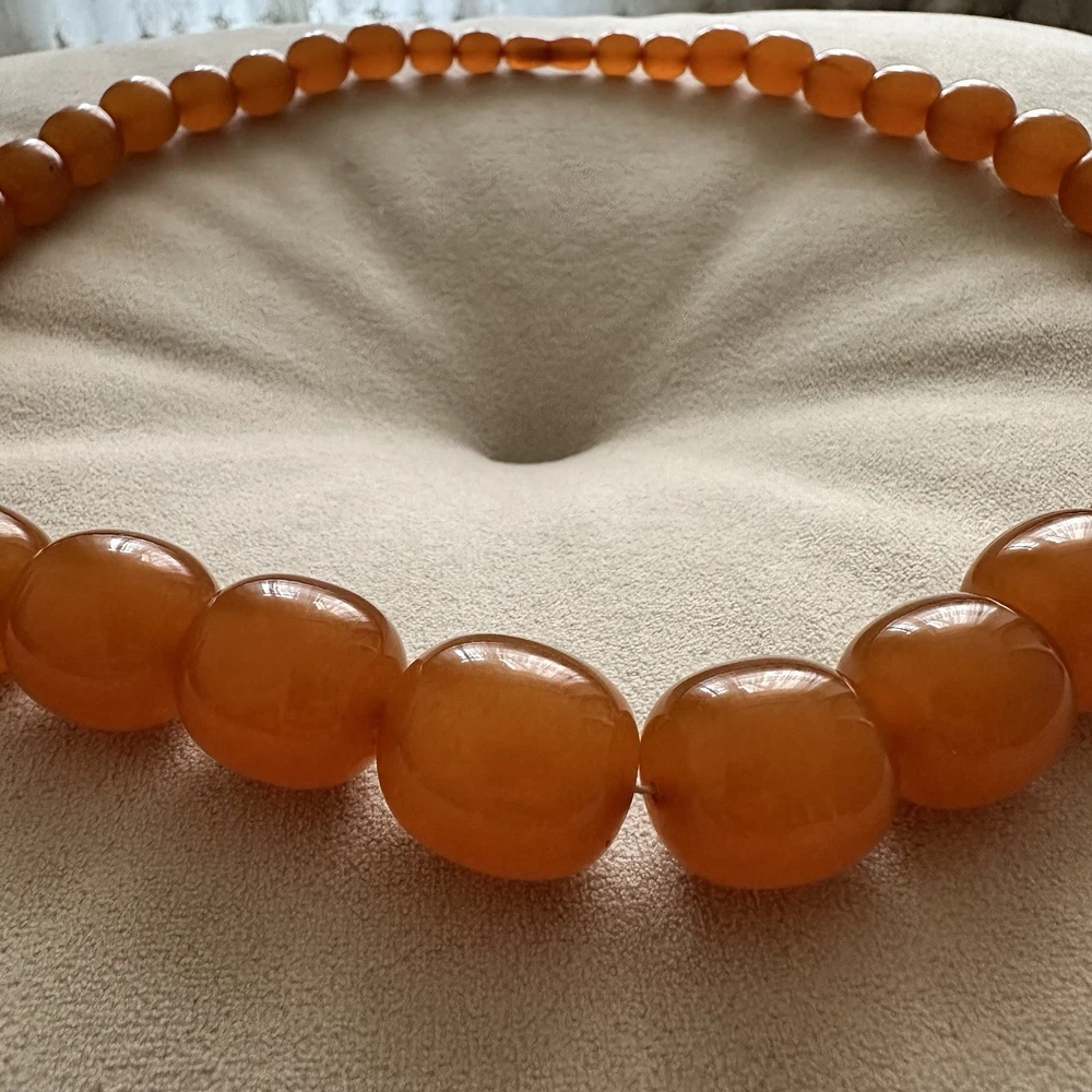 These huge amber beads from Kaliningrad is a stunning piece of fine jewelry from the Soviet Era. This 27-inch and 127 grams necklace features orange amber beads with a ball closure, making it a unique and stylish accessory for occasions like Christmas, birthdays, and Valentine's Day. The beaded design and natural creation of the amber stones add to the retro and ethnic theme of the piece, making it a standout addition to any jewelry collection. Made in the ussr during the 1970s, this original vintage necklace is a testament to the artistry and craftsmanship of that era. There are my other items... https://www.ebay.com/usr/universeofjewelry