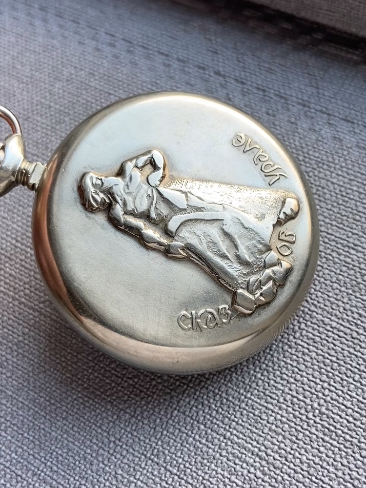 Molnija Soviet Vintage Pocket Watch 1970s Great model for themed professional vintage gift or for collection! The "Tale of Urals" the series of pocket watch Molnija had image stonemason - character from Ural fairy tales and associated with the Ural Mountains, historical events of the Urals. This pocket watch Molnija was made at the Chelyabinsk watch factory at 1970s. The case diameter is 50 mm, w/crown 54 mm . The mechanism cal. 3602 is mechanical and hand-winding The pocket watch has have an additional dust cover The pocket watch has good cosmetic condition for vintage pocket watch. The mechanism is fully functional and was served by a professional watchmaker. All the details you can see in the pictures. See the pictures . All the pictures are actual. Also I can provide combined shipping for several of my items. If you have any questions about delivery or about item, please let me know . Thank you. Dear customers, I send parcels by Ukrposhta worldwide from Ukraine without delay. The delivery time is now the same as before, regardless of the situation in my country. All services are working. Therefore, please not worry when ordering in my store. All parcels have been delivered to customers I sell vintage watches from USSR period. The watches was served and restored. The vintage watches are still good accessories. Also broken watch parts for creative projects and jewelry making. All the proceeds from sales support my family and support the economy of Ukraine.
