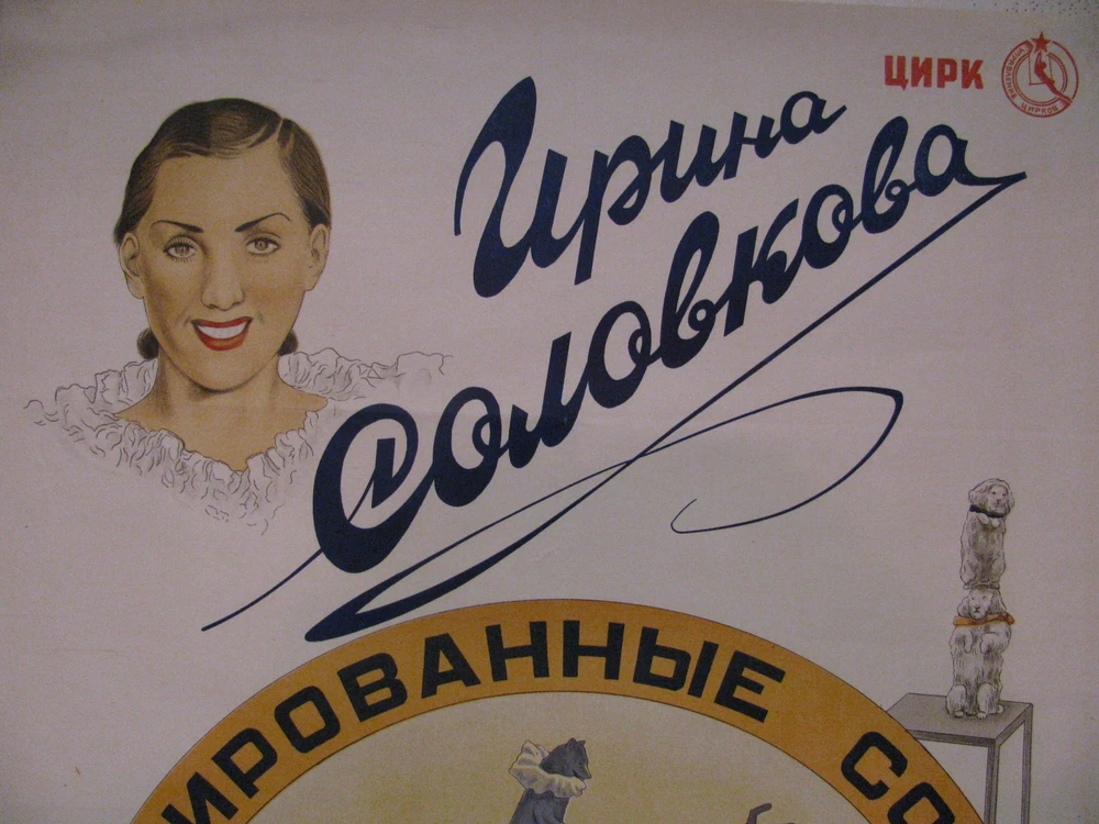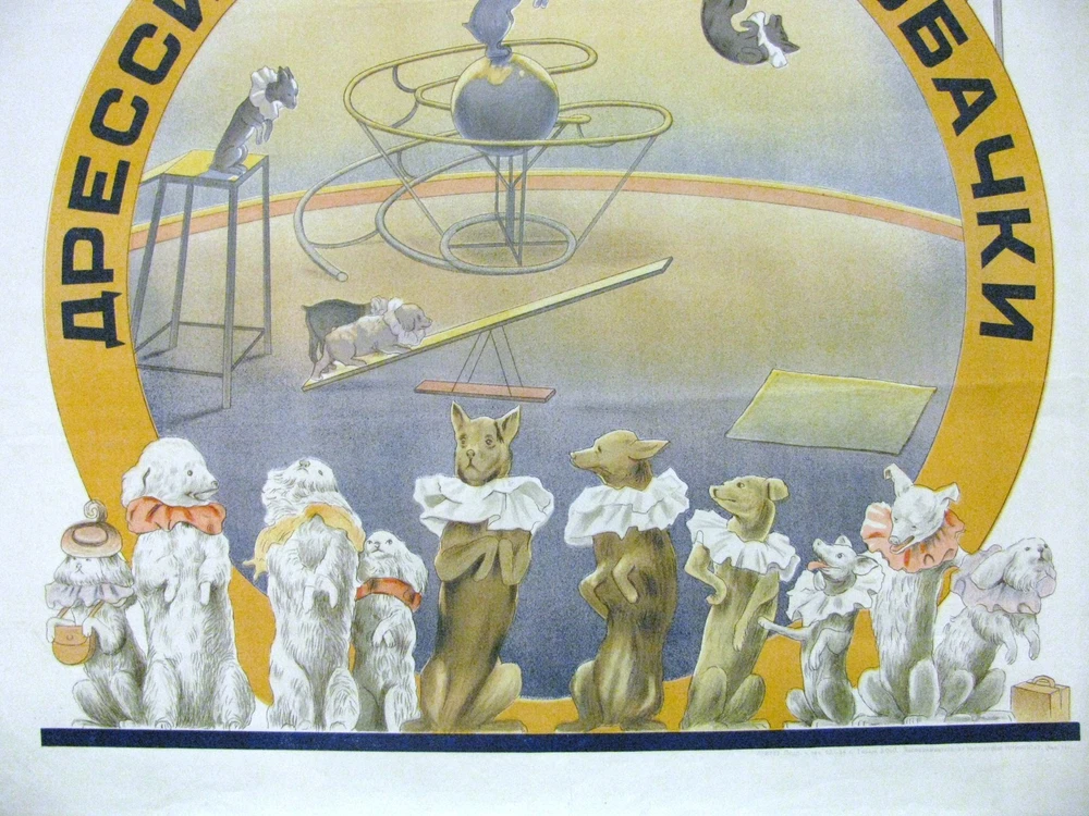 You are looking at a remarkable rare piece of the soviet art of CIRCUS. This 100% original poster was issued in MOSCOW 1954 in the Soviet Union. It says: " IRINA SOLOVKOVA * TRAINED DOGS * ". By Artists : . The size of the poster is 24.5 x 34 in. It was issued in editions of 3,000. LITHOGRAPHY , UNIQUE , VERY RARE ! The poster is in a good condition. Please take a look at the other posters from my collection and visit my store, "Golden Poster Collection"!