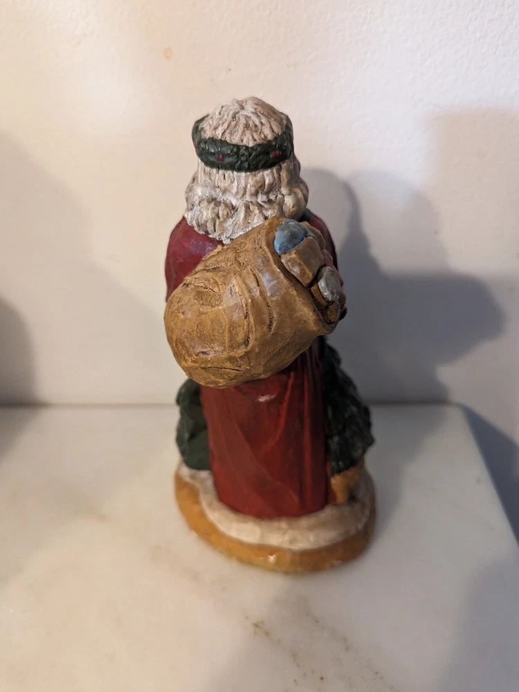 This vintage St. Nicholas figurine is a charming addition to your Christmas decor. Crafted from papier mache, this small figure measures 7.5 inches in length and 4 inches in width. The multicolor design and intricate details make this piece a perfect choice for collectors and enthusiasts alike. The Santa figurine is part of the German style and features a seasonal and old-world theme. Ideal for adults, this collectible is perfect for holiday and seasonal decorations. The item was manufactured between 1980 and 1989, making it a unique and timeless piece. Add this lovely figurine to your collection today!