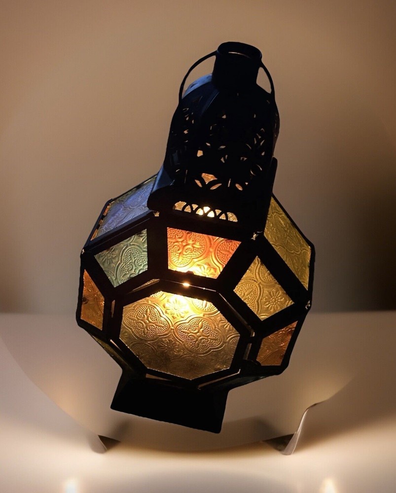 (Lot of 2) vintage stained glass candle holder. They are absolutely beautiful when lit up in the dark ! Features stained glass and swinging door with latch. The door swings outward to the left. I’ve cleaned them the best I can, but the glass could be taken out and cleaned a little better, perhaps I was being a little too careful . But They would look even better if one word to do that . There is nothing broke and the only thing missing is one chain .. They’re both in excellent condition. I do have the one chain that I will include, cannot find the other. I do not know the brand of these because there is no markings or engraving stating so. They do have a vintage rustic look, perfect for any holiday you choose, including Halloween! Ps, If one wanted to they can go to a department store, like Home Depot or Lowe’s or som ewhere similar to get matching chains, ideally black . But whatever color you prefer. Add a touch of vintage charm to your home decor with these two beautiful stained glass candle lanterns. The hexagon shape and abstract pattern make them an ideal choice for adding a mystical and festive touch to your indoor and outdoor spaces. These lanterns are perfect for holding flameless/LED lights, candles, tea lights, and mini candles. ⭐️ Will ship within 2-3 business days! ⭐️ I will only accept return shipping if you do not receive the item listed in the ad or as described !