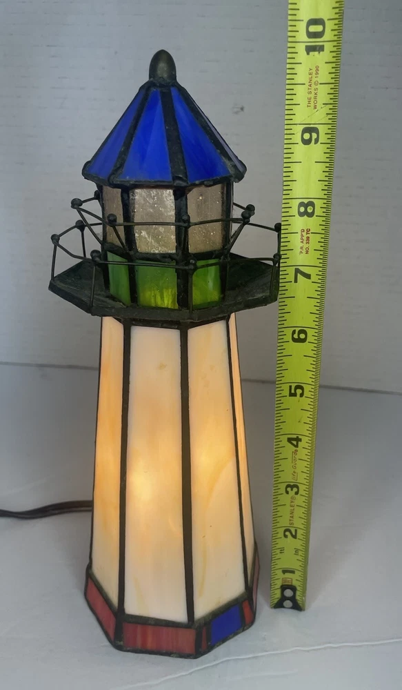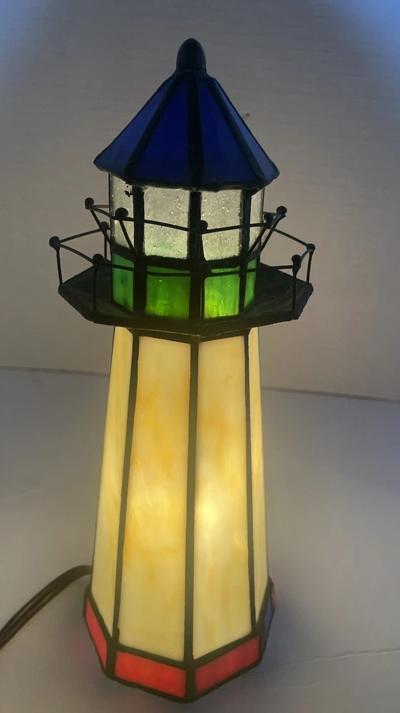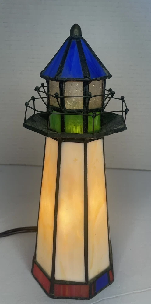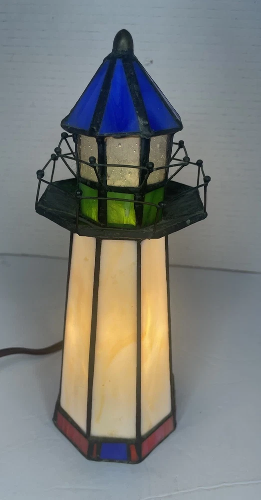 Vintage Stained Glass ~Lighthouse Lamp~Small Desktop Bed lamp Nautical 10”
