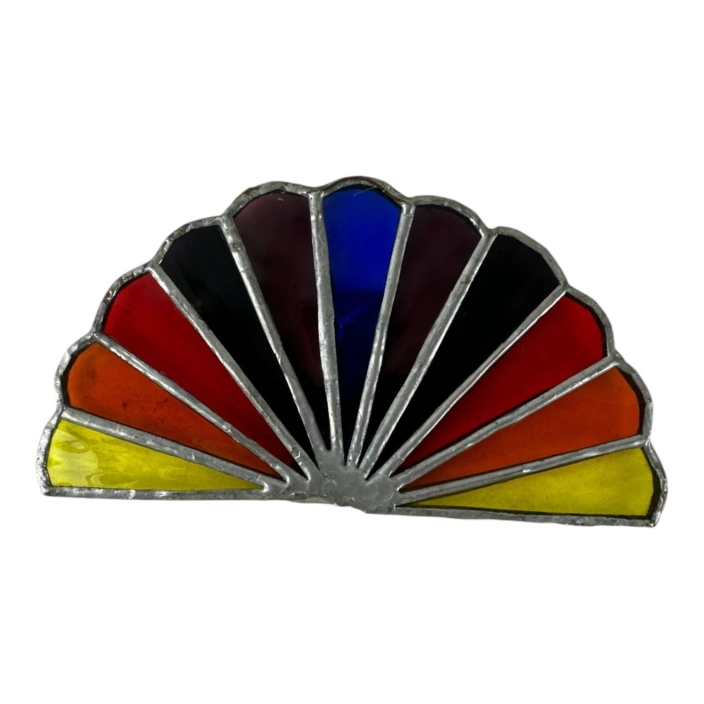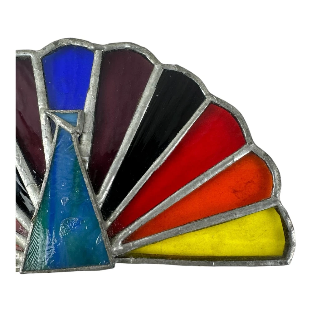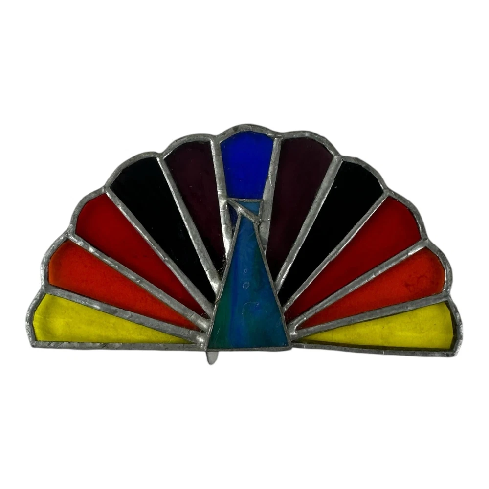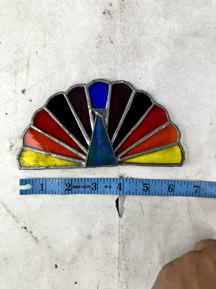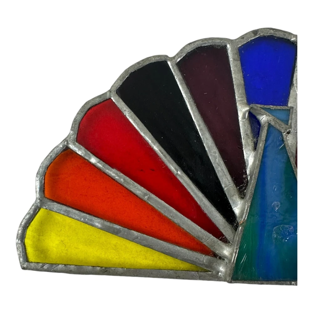 Vintage Stained Glass Peacock reminds me of the NBC Logo. RARE c. 1980's. In great condition, no cracks. See photos.
