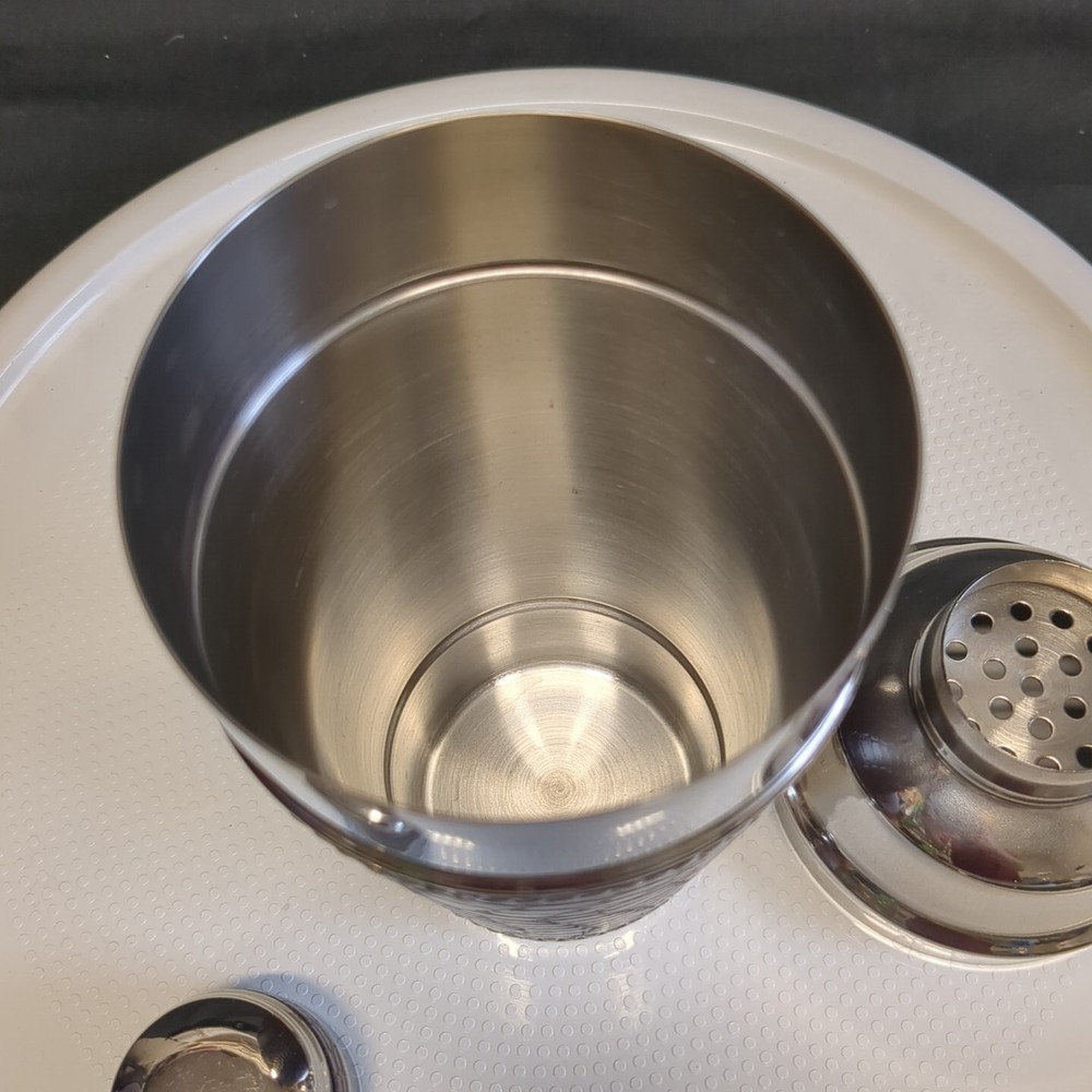 Elevate your home bar with this vintage cocktail shaker from Portofino Home. Crafted from stainless steel and brown leather, this 1 qt shaker features an all-over pattern and is perfect for shaking up your favorite drinks. The shaker comes with a dispenser and strainer, making it easy to use and clean. With a height of 10 inches and a width of 5 inches, this cocktail shaker is a great addition to any kitchen or bar setup. The silver color and arts & crafts/mission style add a touch of elegance to your home decor. Lightweight and easy to use, this shaker is perfect for both novice and experienced bartenders.