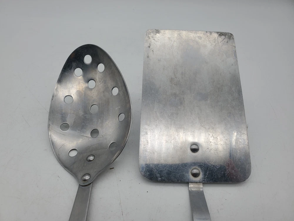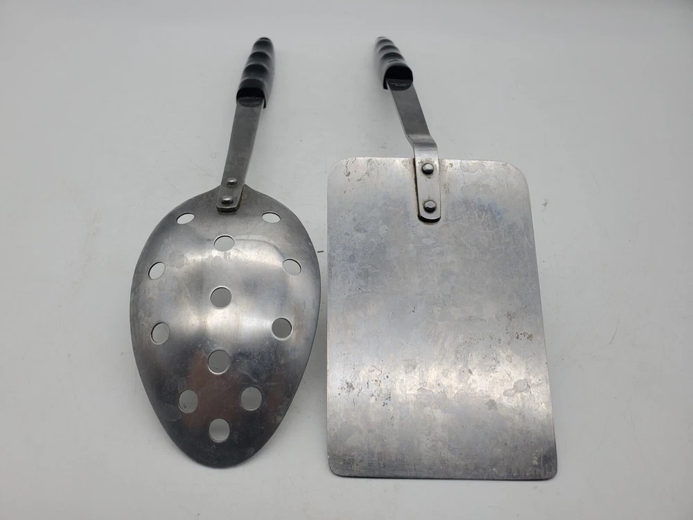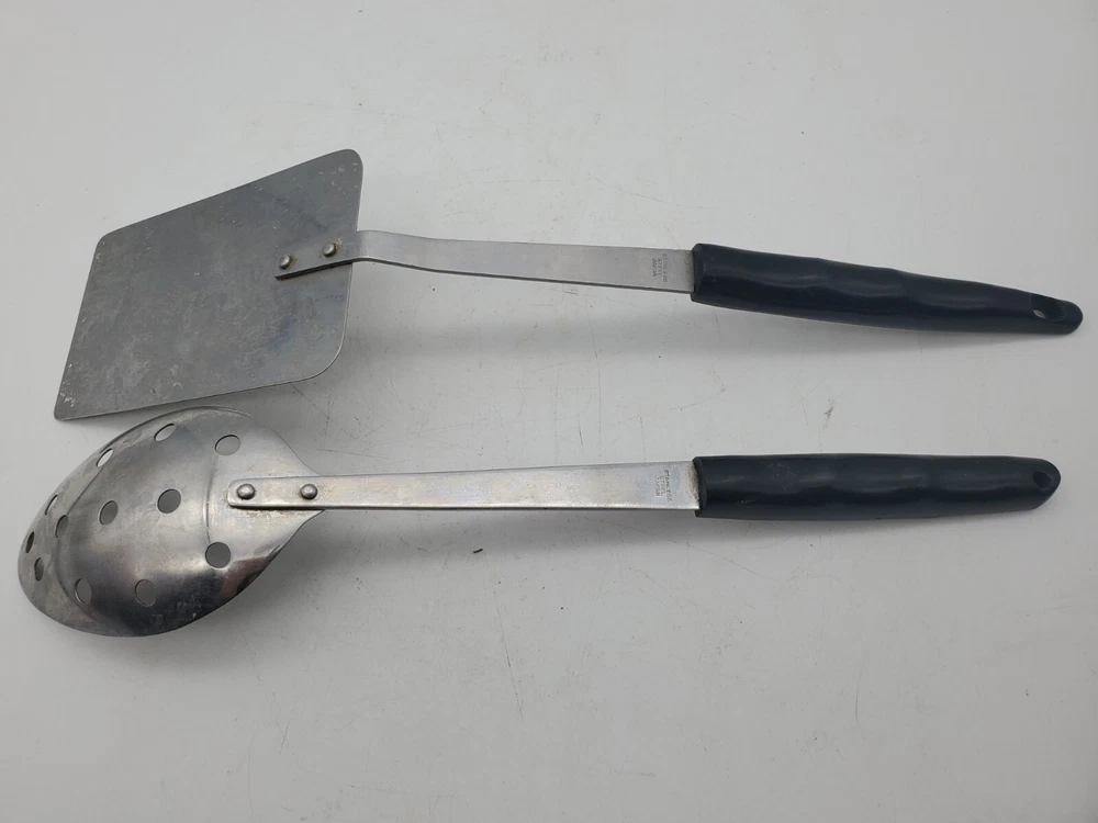 Vintage Stainless Steel Serving Utensils, Spatula & Spoon, Japan, White & Black