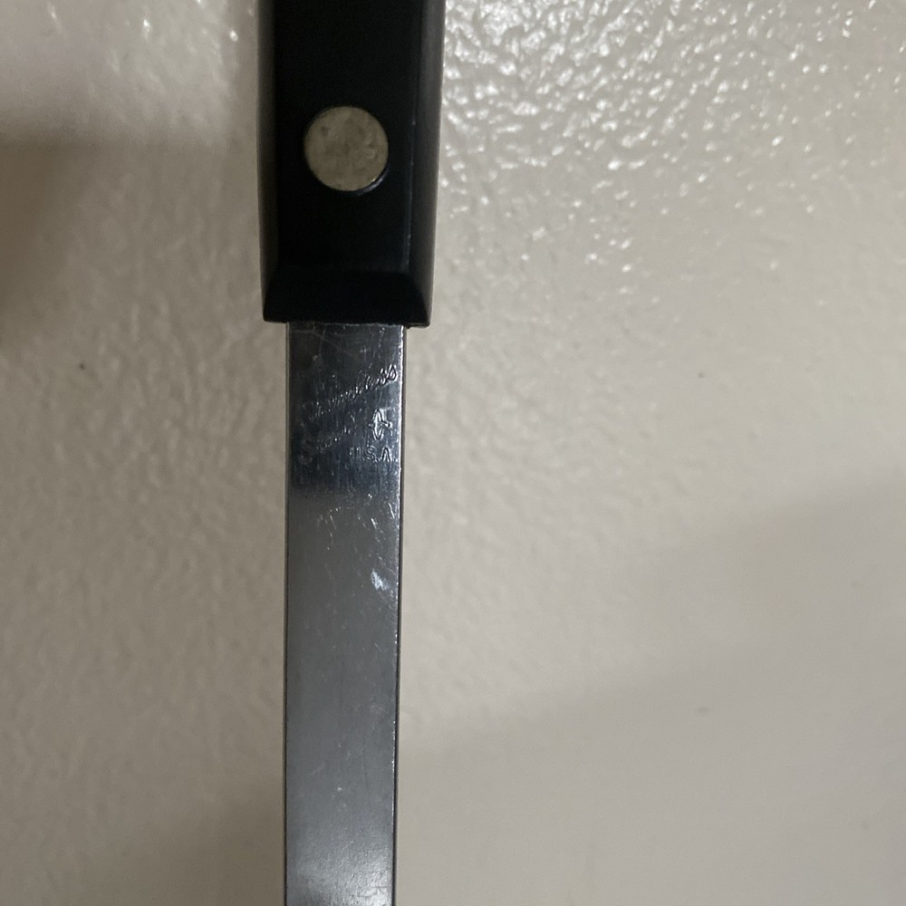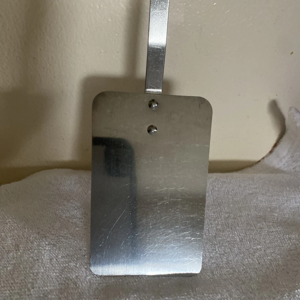 The Vintage Stainless Steel USA Spatula is a collectible kitchen tool perfect for flipping pancakes, burgers, and other dishes. Made in the USA, this spatula boasts a classic design and durable stainless steel construction. Its ergonomic handle provides a comfortable grip, making it a practical and stylish addition to any kitchen collection. Ideal for cooking enthusiasts or vintage collectors, this spatula combines functionality with a touch of nostalgia. The only markings that I see on this flipper are lettering near the handle and it says stainless steel USA and there are two little tiny stars. It looks like an ECKO turner, but I am not entirely sure. There are some surface scratches and signs of use but still has many years to go. The handle is some kind of very dark smooth plastic. Maybe Bakelite . It is well made. Please see all photos.