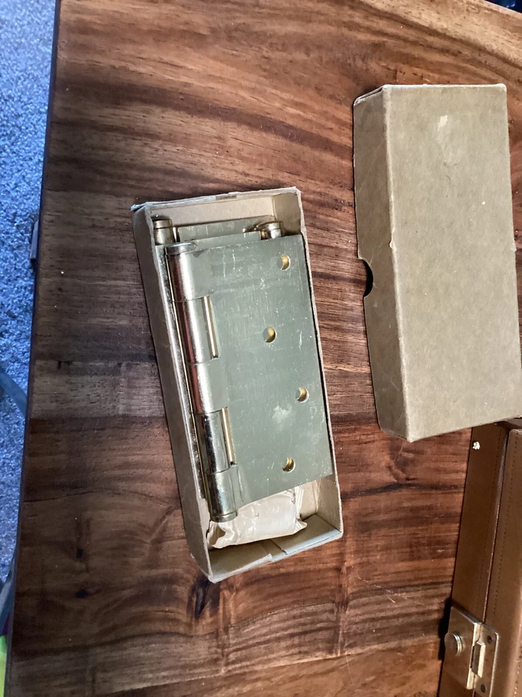 This vintage Stanley door hinge set is a perfect addition to any home improvement project. The set includes butts and hinges plated with satin brass, giving it a unique and elegant look. The hinges are 4 inches in length and width, suitable for any door in your home. In the original box and yes the extra hinge is a match. The brand Stanley is known for its quality and durability, making this set a reliable choice for your needs. The hinges are made of both brass plated and steel materials, ensuring they will last for years to come. This set is perfect for anyone looking to upgrade their doors with a beautiful and functional hardware set. * only 2 packages of screws with set for 8 total screws. Enough for 1 hinge. Bidding is agreement to the following “General Terms of Sale”: I want happy customers and I try my best to keep purchasers informed and satisfied. Over time I developed these clear terms to answer questions up front and avoid confusion. Buyer assumes responsibility for reading and understanding the entire sale listing, if you have any questions ask them prior to bidding or purchasing. Item sells and ships as pictured and described, nothing else is included or provided unless specifically stated. Any description is subjective opinion of seller inferring only to visible general appearance of item and does not indicate operability or fitness. Measurements are rough approximates. Color in photos may not exactly match physical item due to image rendering differences. Listing title is for search assistance only, written item description and terms of sale take precedence over photos and titles. Seller is not an expert, all observations and statements are personal opinion and not guaranteed fact, purchaser assumes sole responsibility for researching and assessing: completeness, condition, classification, and fitness with respect to all aspects of the item listed for sale. All items sold as-is and where-is, all sales final, no guarantees or warranties are expressed or implied. Payment for shipped items shall be made via Ebay only. Full payment required immediately upon sale close. No third party transactions or shipping. Shipping pricing applies to USA mainland contiguous 48 states only, additional costs apply for shipments to any other areas. Any indicated shipping and handling times are rough estimates and are not guaranteed times. Purchase price shall be declared value. Ships to paypal payment confirmed address only.Seller retains sole discretion over all sale and shipping terms. Buyer may be required to sign for receipt of shipped items at delivery. Buyer shall make all arrangements to receive, accept, sign, and obtain items shipped and bears costs of any return shipping. Buyer assumes responsibility for item once delivered to buyers address. Purchasing constitutes full agreement and acceptance of all terms and listing contents. Once again, thanks to everyone for your continued strong interest in these sales... By the way.... Please visit our other auctions! We find lots of cool things and sell them. That’s what we do!! All for you!